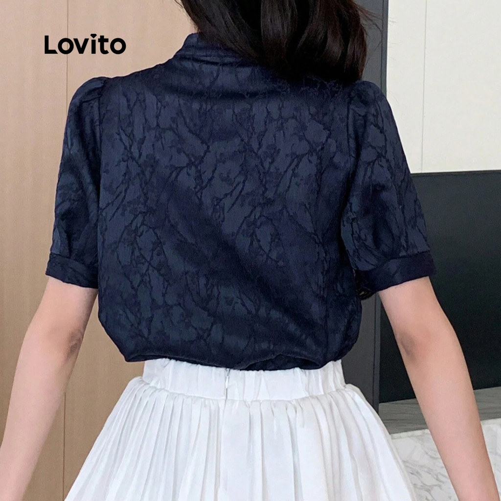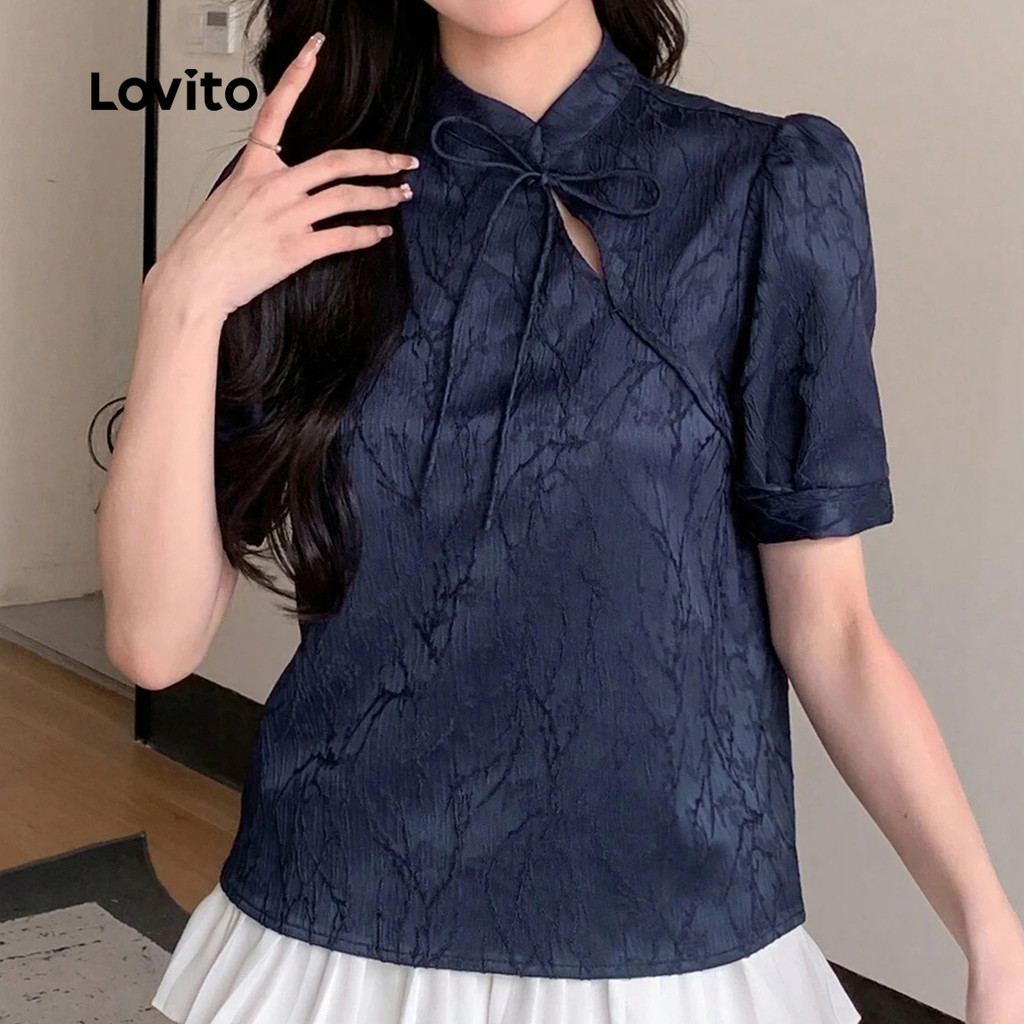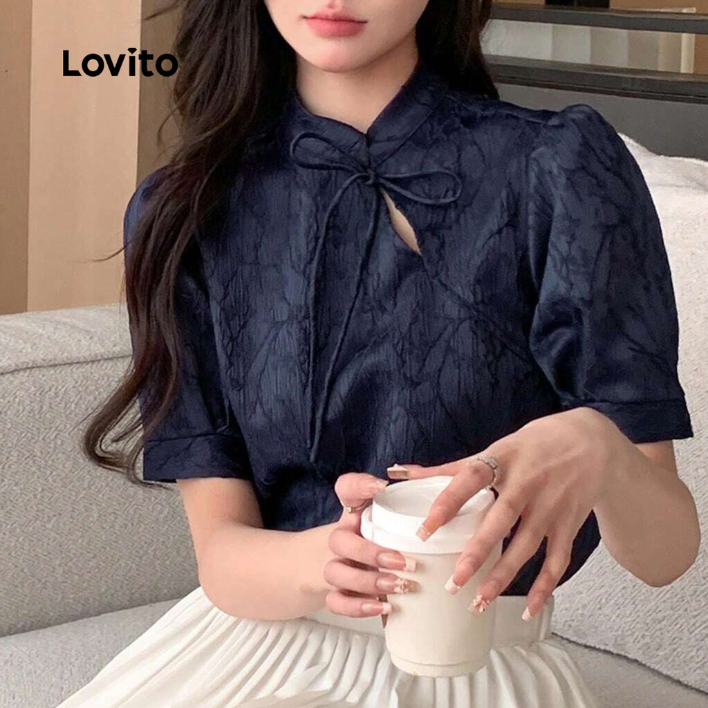 Lovito Blusa Elegante De Festa Estilo Chinês Assimétrica Azul Marinho Primavera/verão Para Mulheres LK2ED208