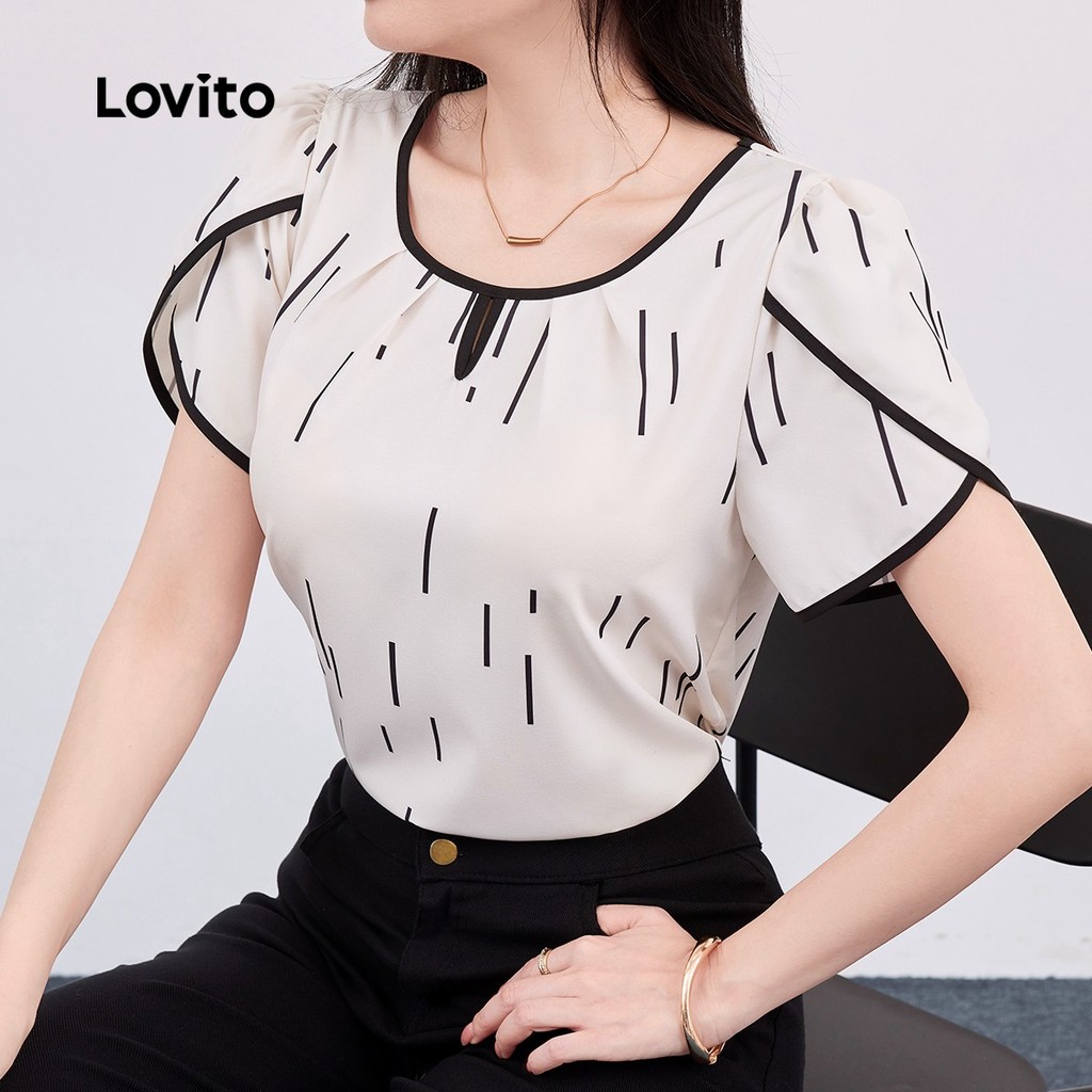 Lovito Blusa Casual com Padrão Colorblock Primavera/verão para Mulheres L178LD1604