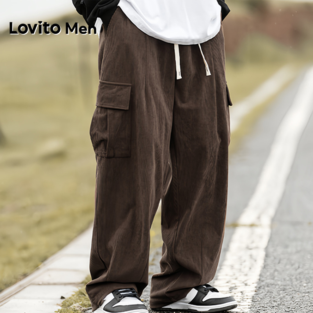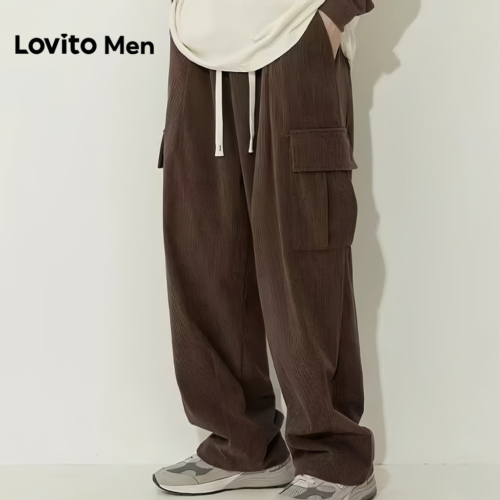 Lovito Casual Cargo Drawstring All Seasons Marrom para homens LNE127110