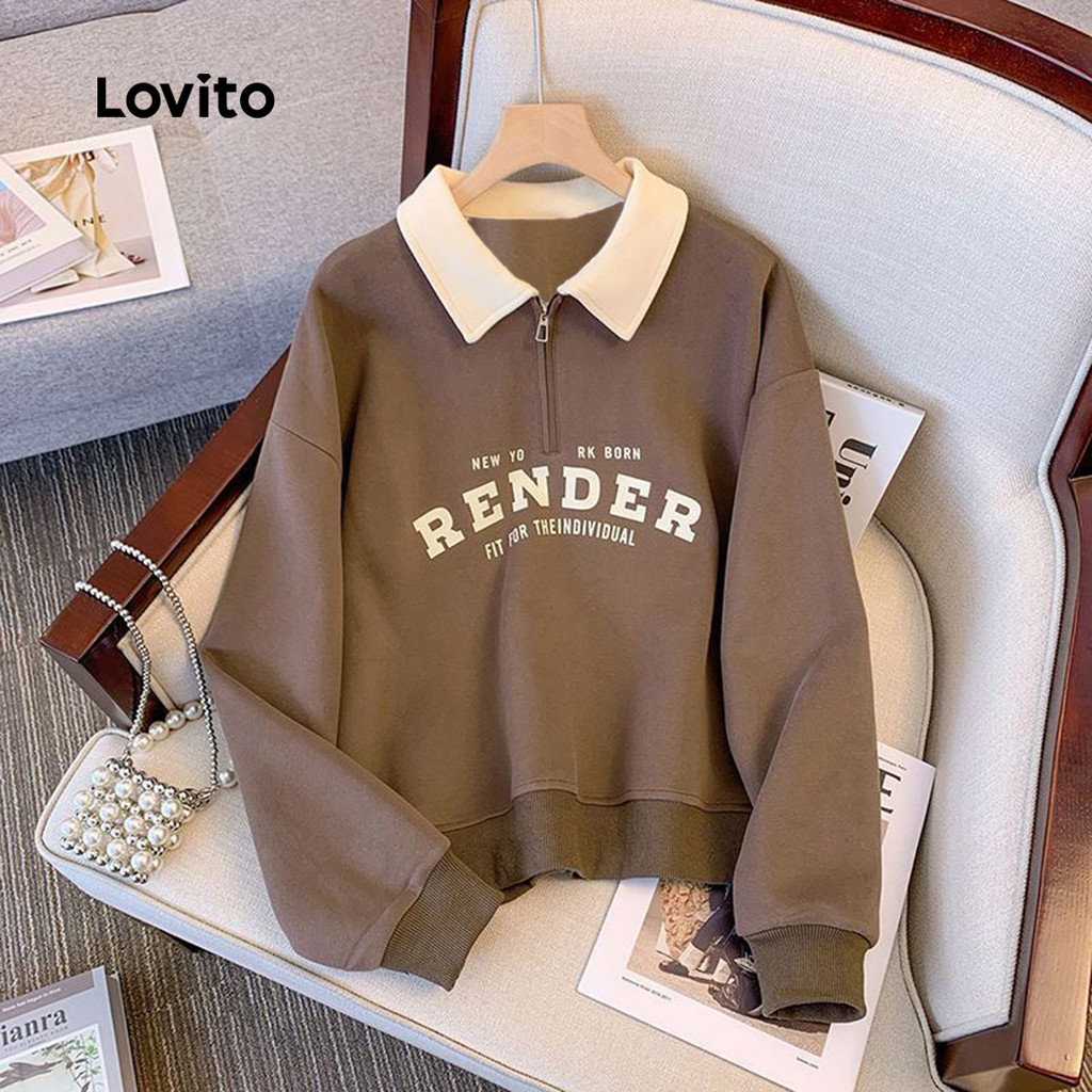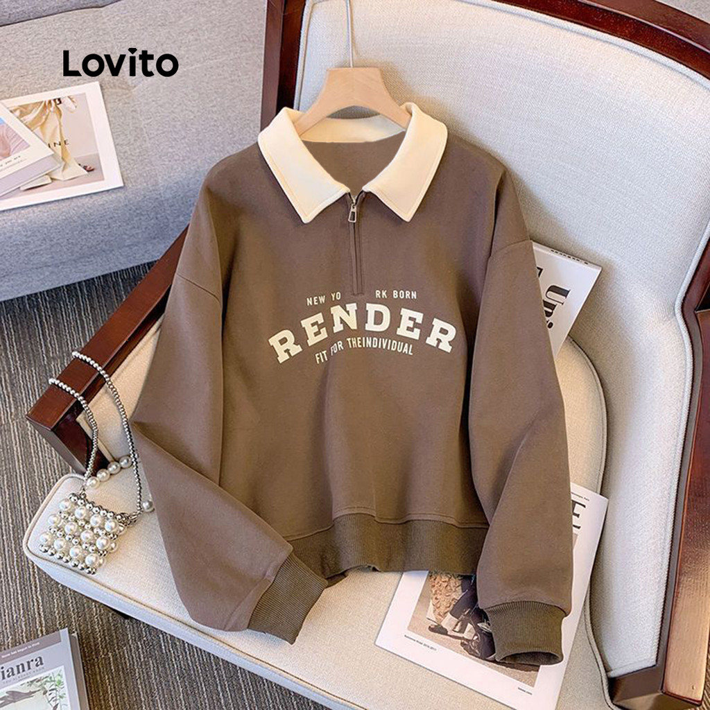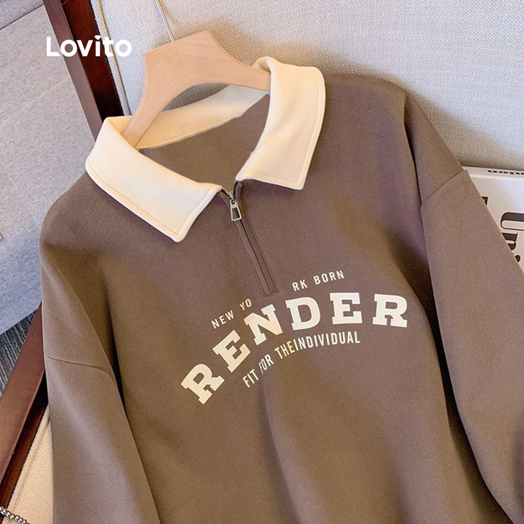 Lovito Casual Sweatshirt Lazer Simples Outono/inverno Marrom Suéter para Mulheres. LNA130018