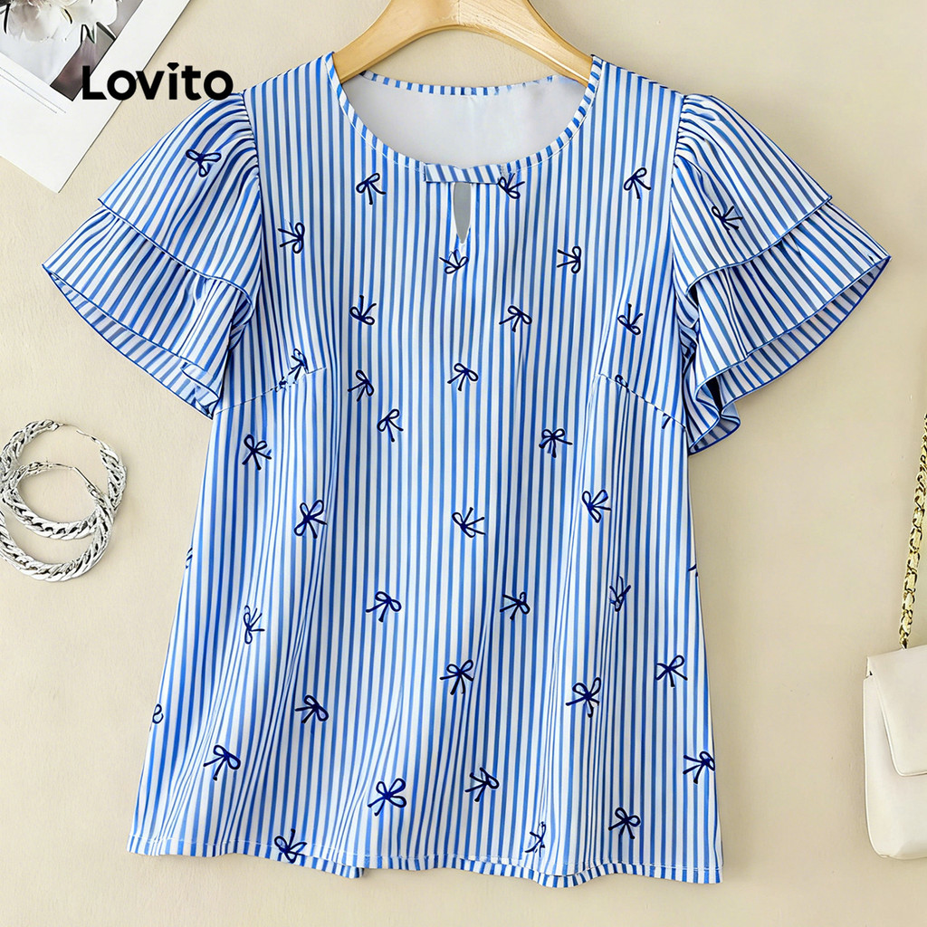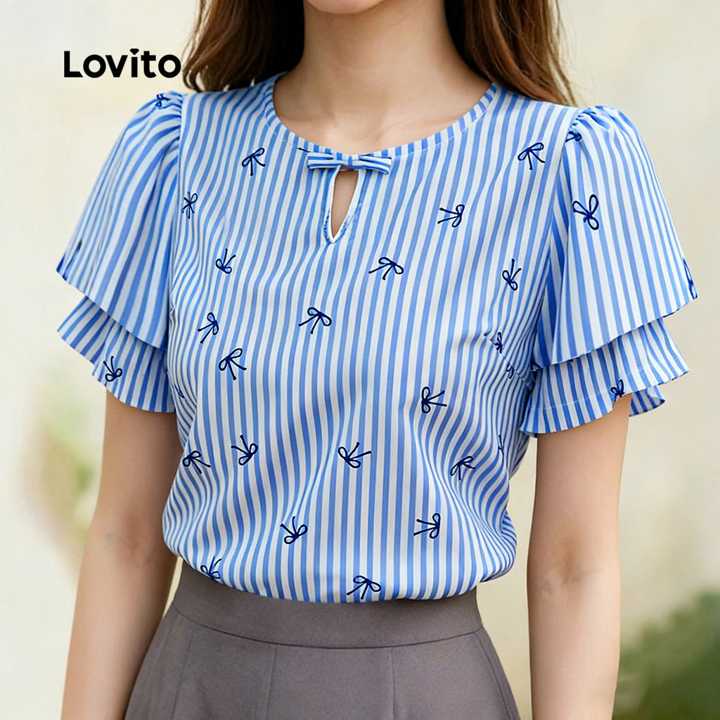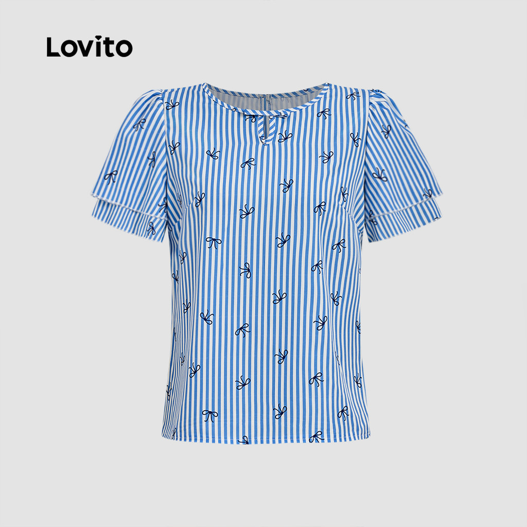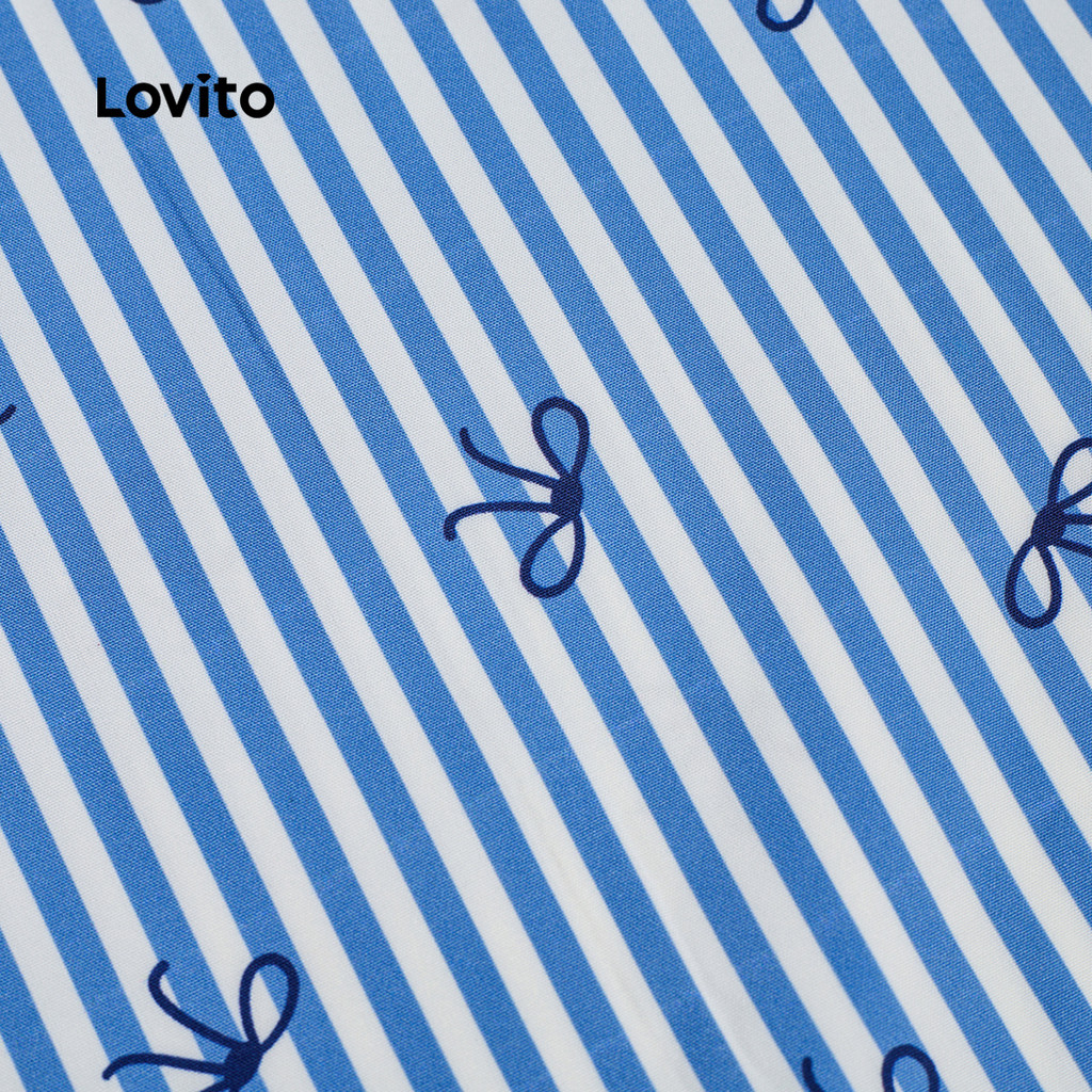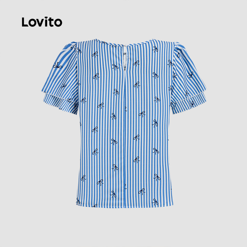 Lovito Blusa Casual Dupla Camada Arco Frontal Listra Lateral Primavera/verão Azul para Mulheres L172ED381