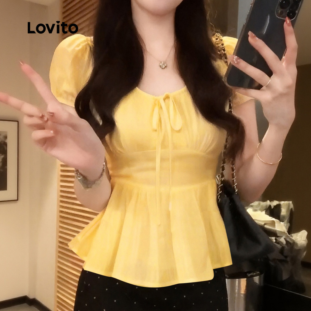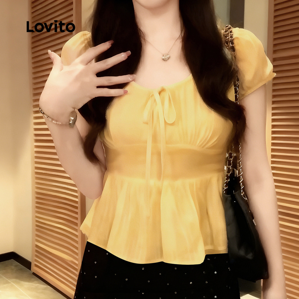 Lovito Blusa Feminina Casual Amarela com Laço Primavera/Verão LK2ED988