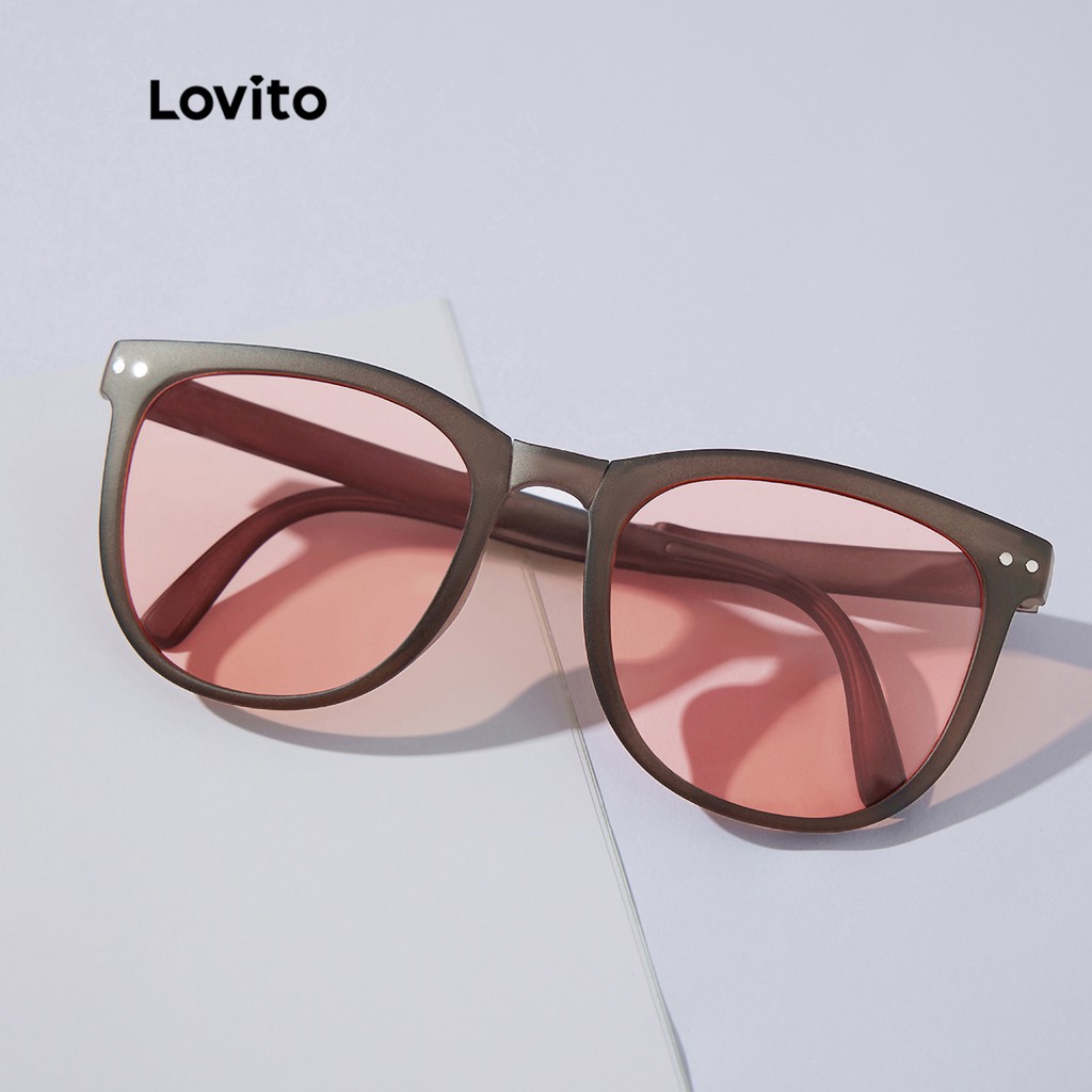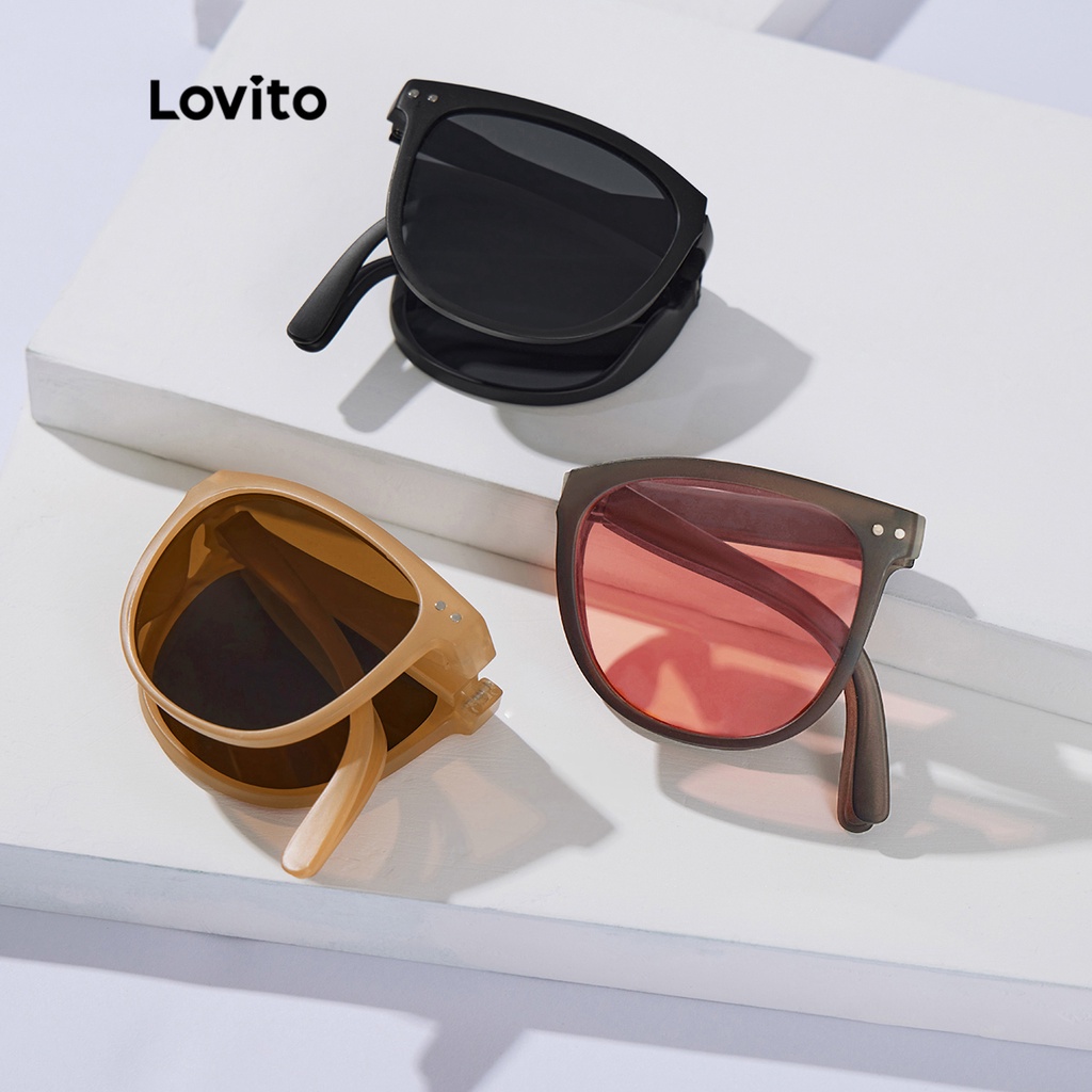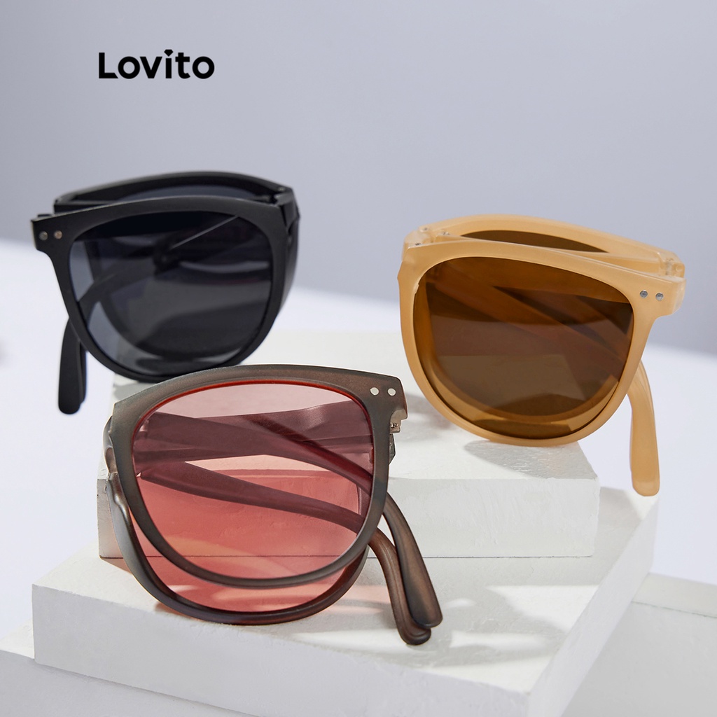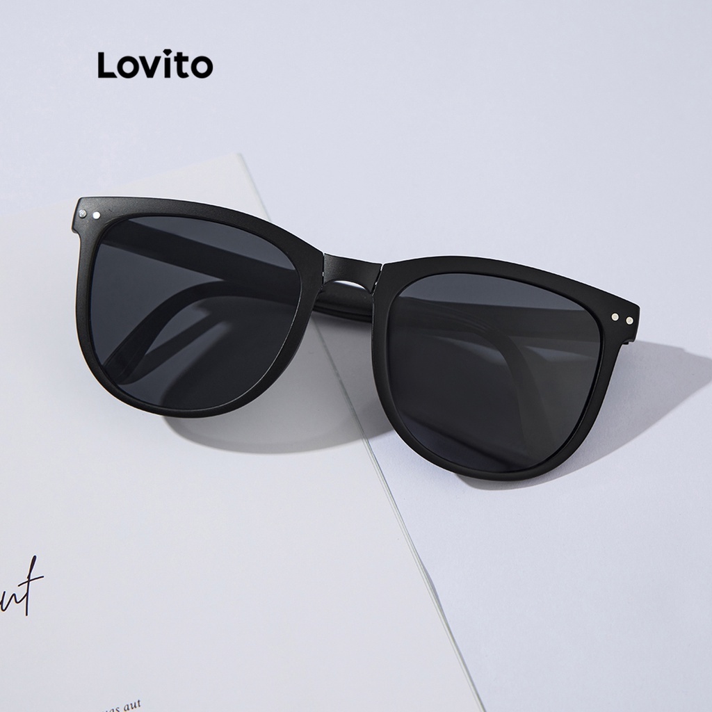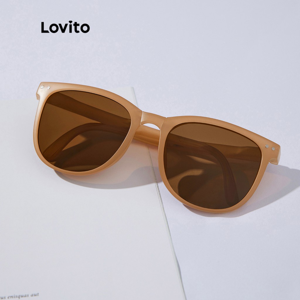 Lovito Óculos de Sol Simples Básico Versátil com Estojo L34AD058 (Café/Bege/Preto)