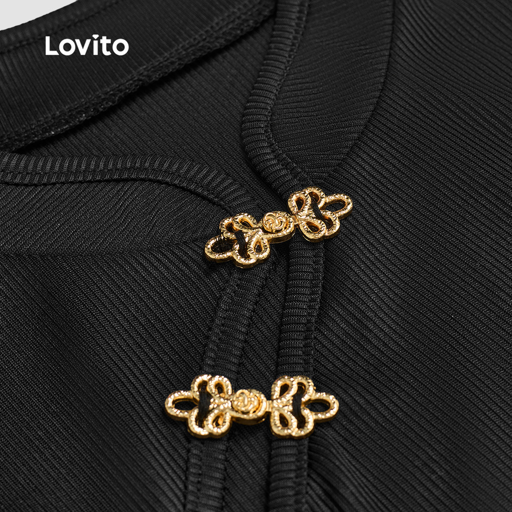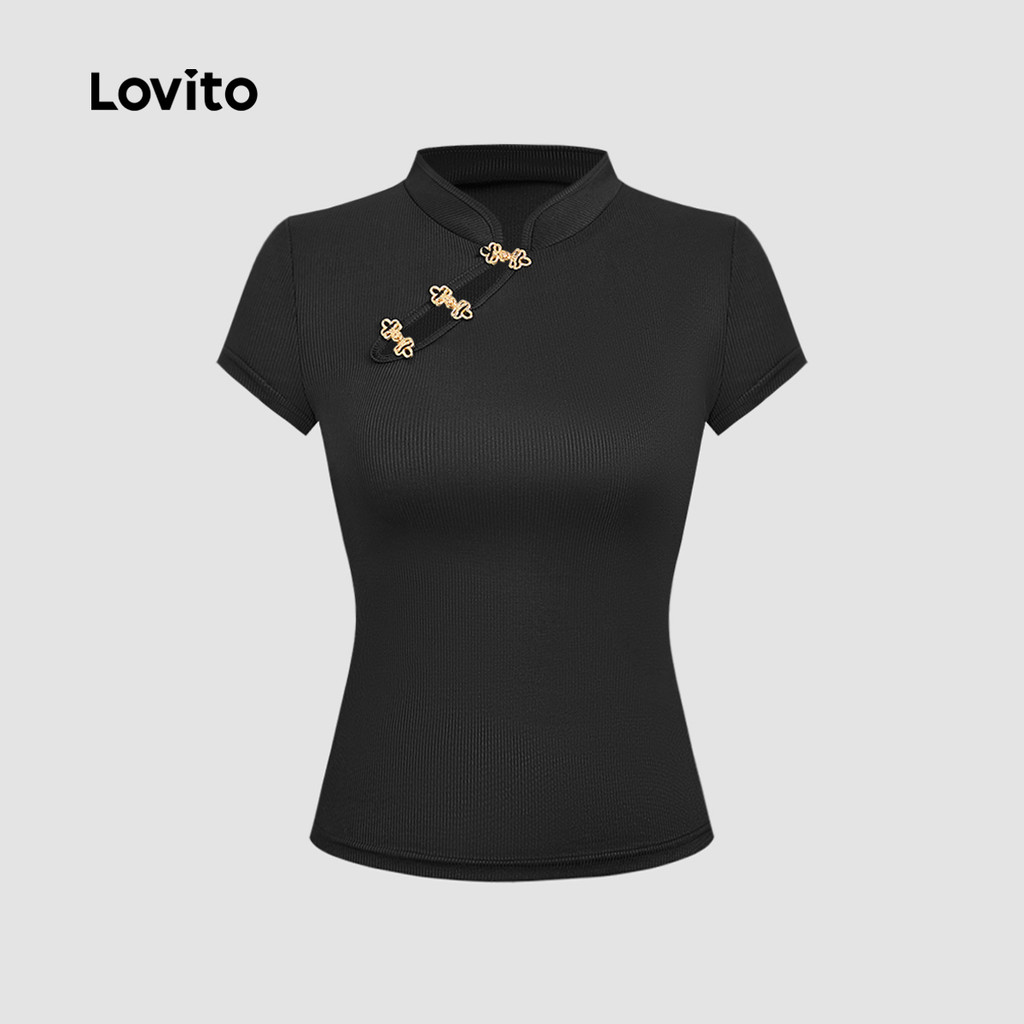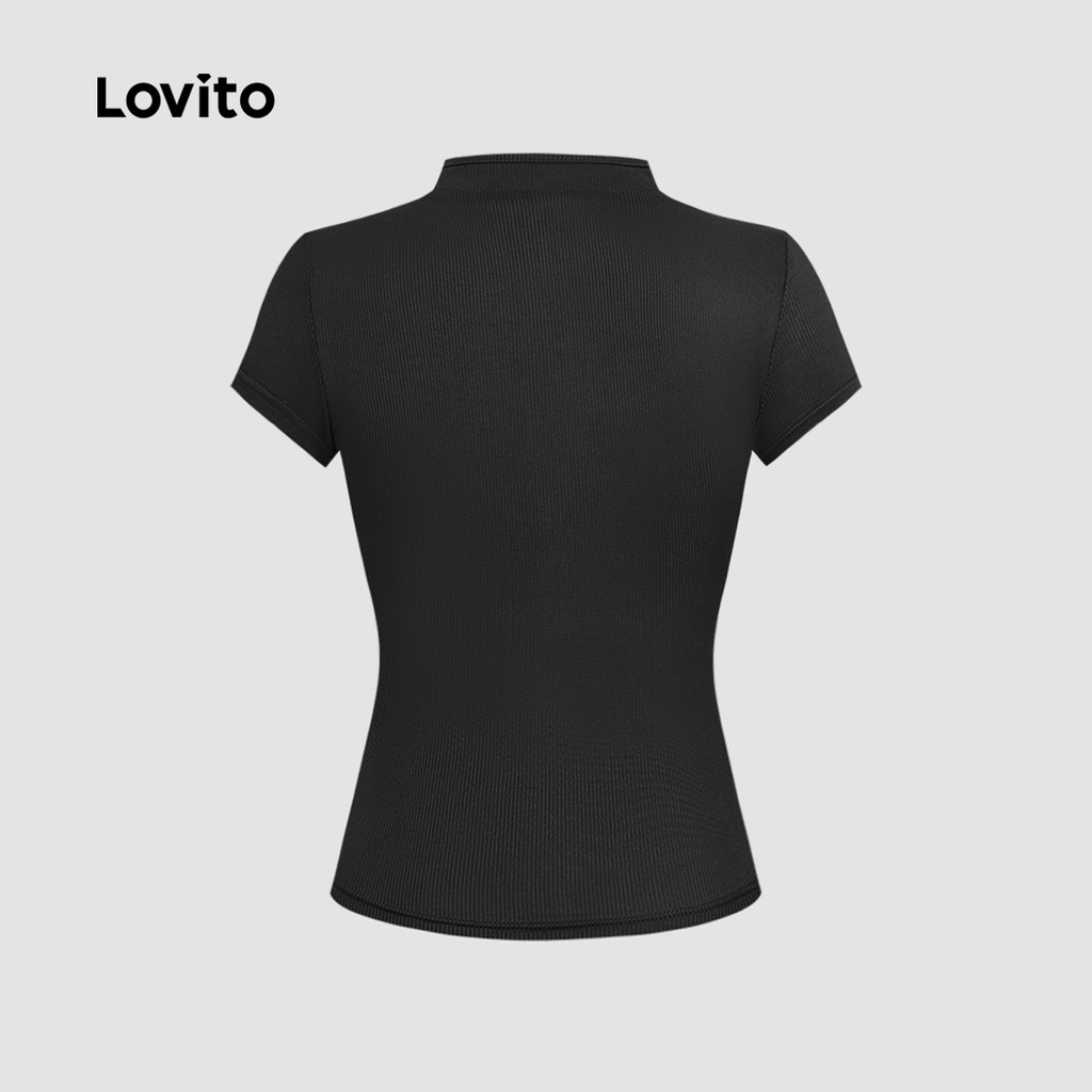 Lovito Camiseta Casual Vazada Preta Para Mulheres Ideal Para Primavera/verão L166AD396