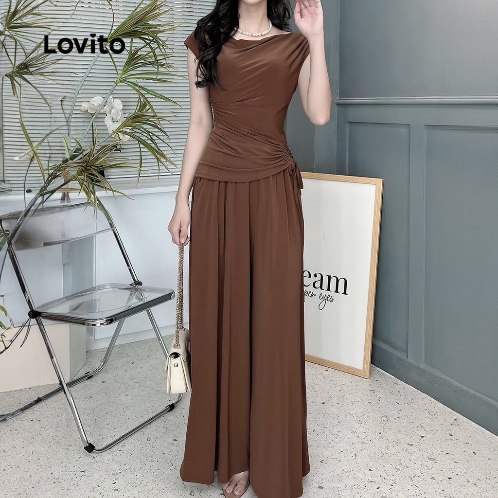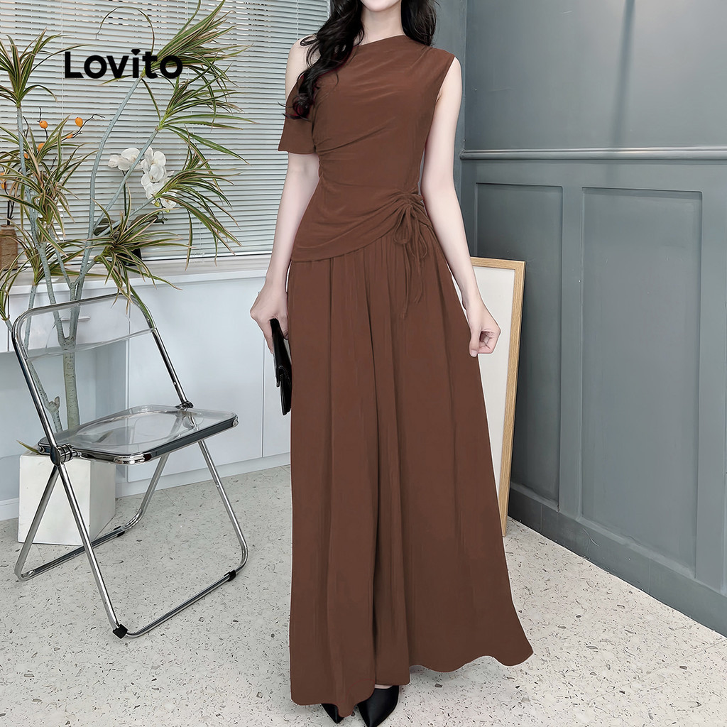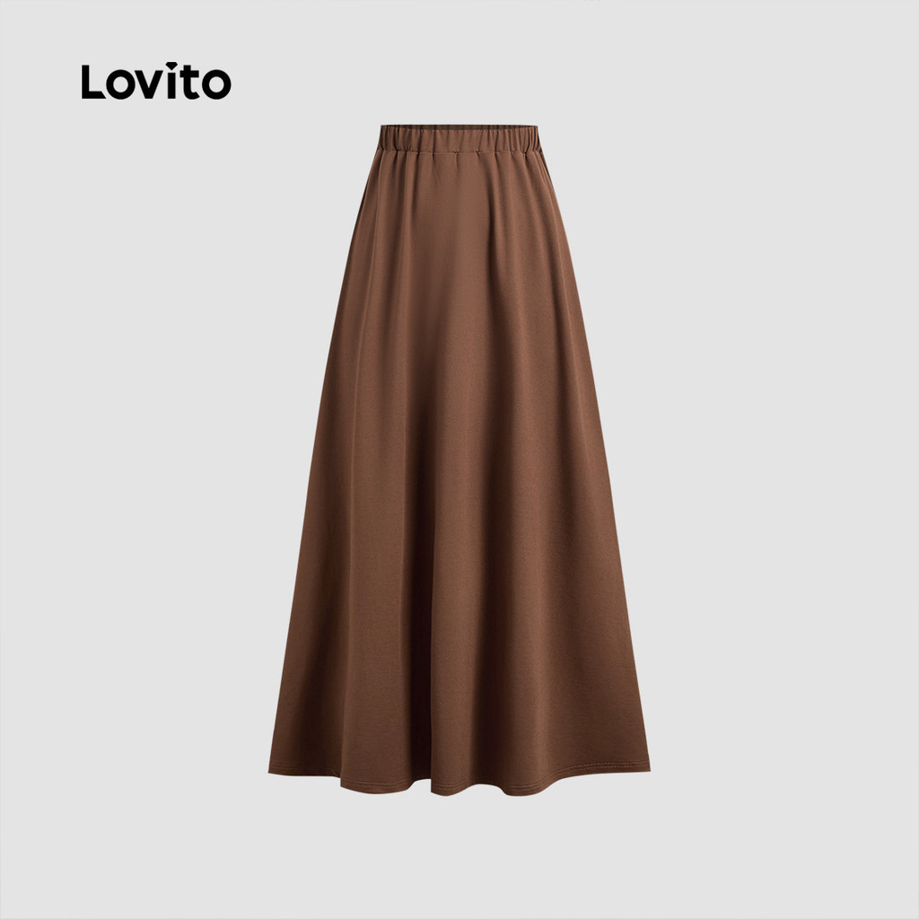 Lovito Tops ou Saias Elegantes Amarração para Lazer Primavera/verão Saia Marrom para mulheres L172ED822