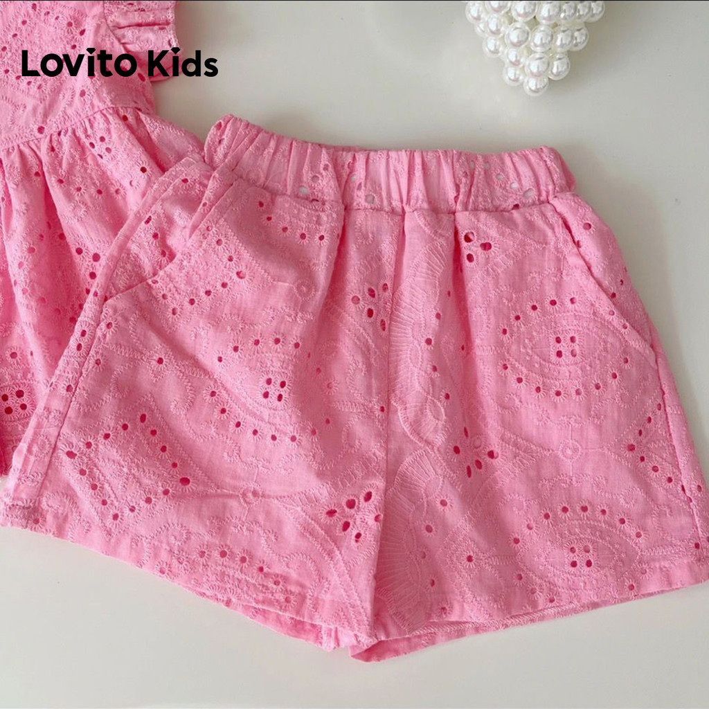 Lovito Kids Conjunto de Shorts Casuais com Bordado em Jacquard e Ilhós Primavera/verão Shorts Rosa LNL128263