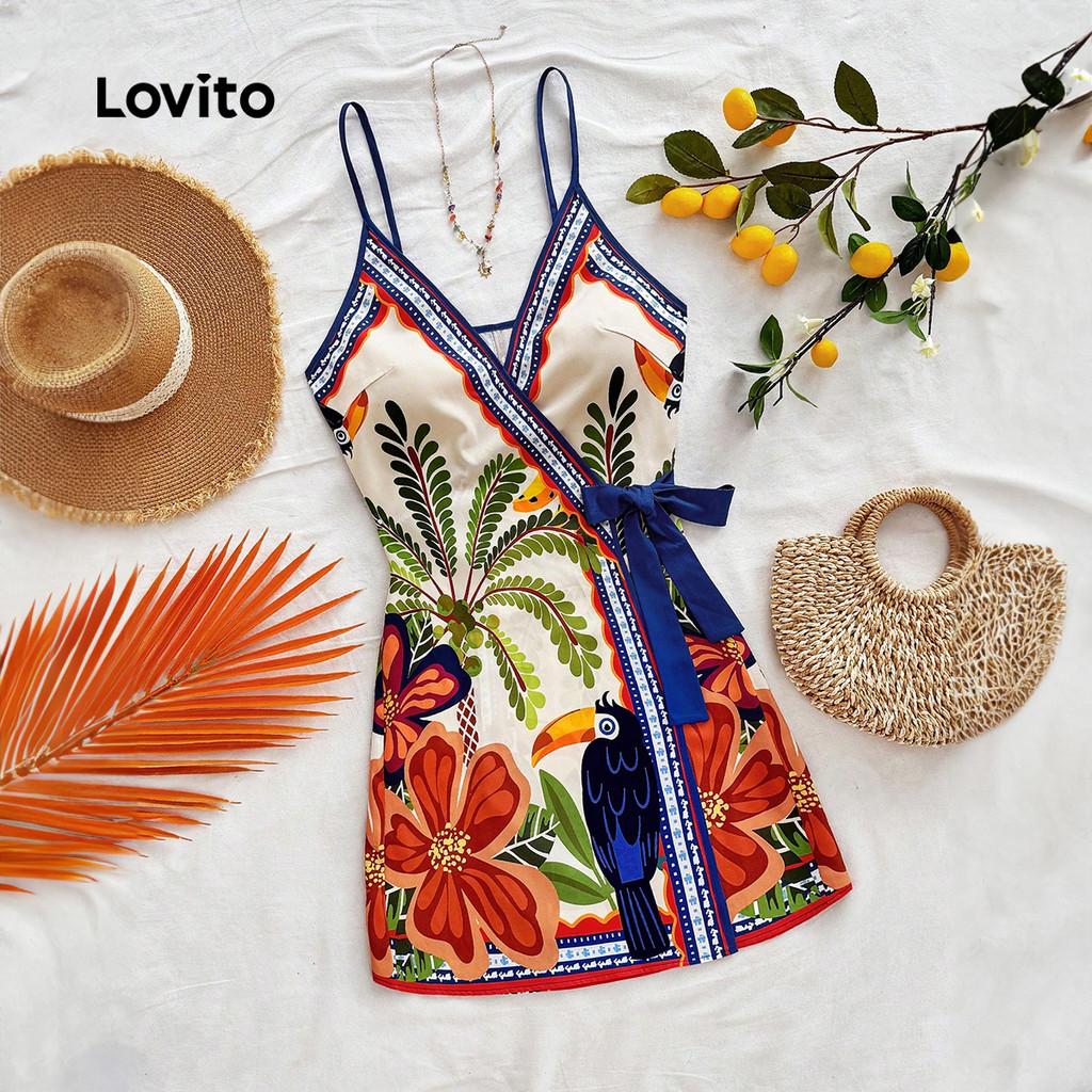 Lovito Refine Vestido feminino Boho com cinto para verão e primavera LBL32241