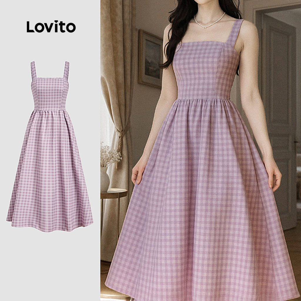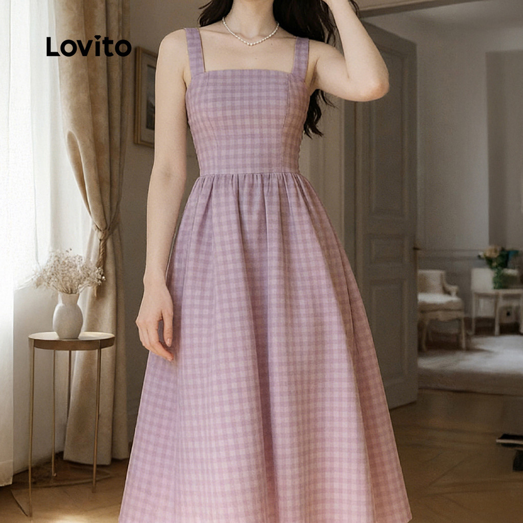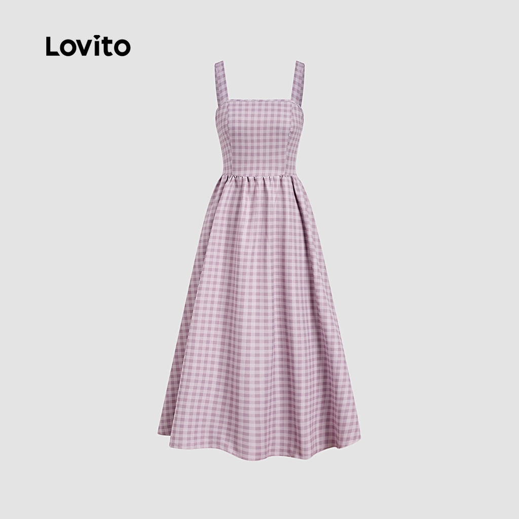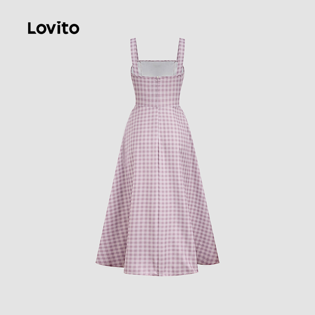 Lovito Vestido Casual Estrutura Linha Zíper Roxo Claro para Mulheres L177AD110