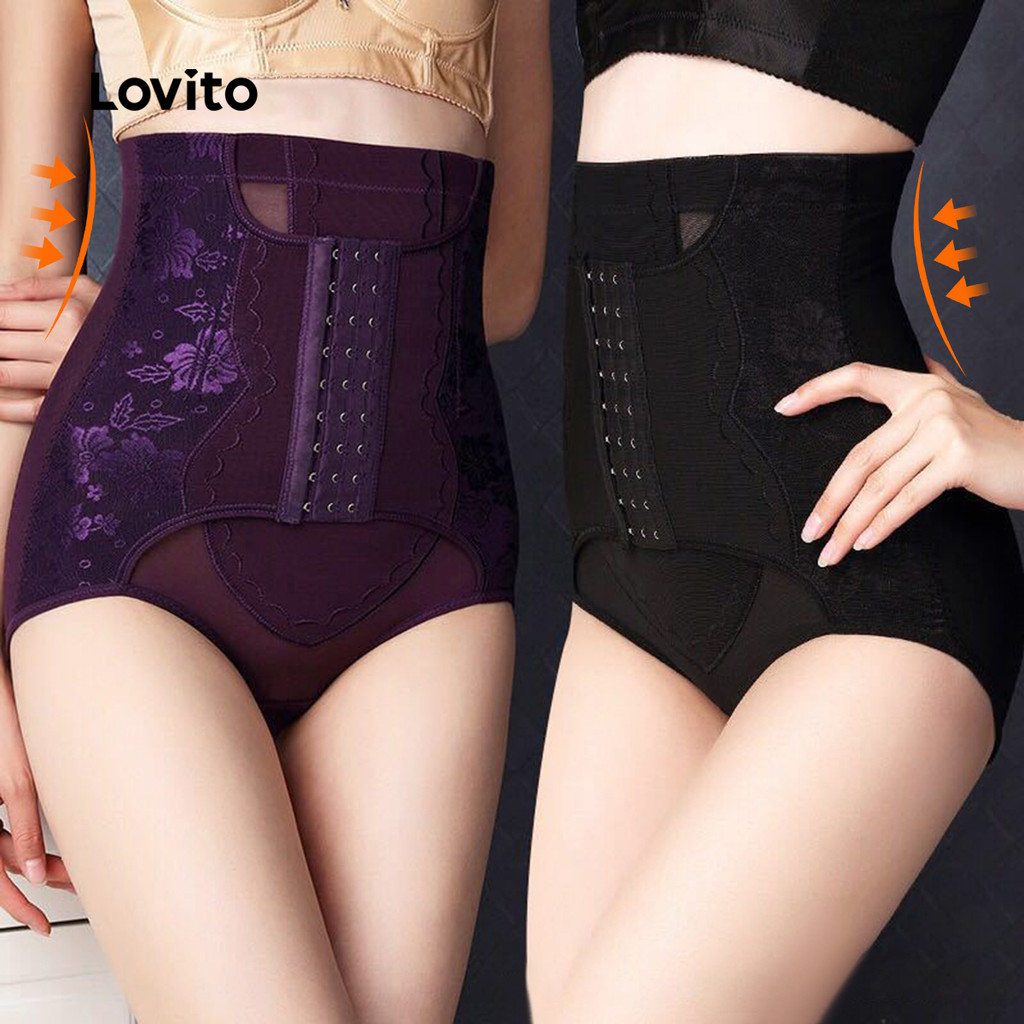 Lovito Shapewear Feminino Cintura Alta com Modelagem Corporal e Efeito Empina Bumbum LNA24160\4