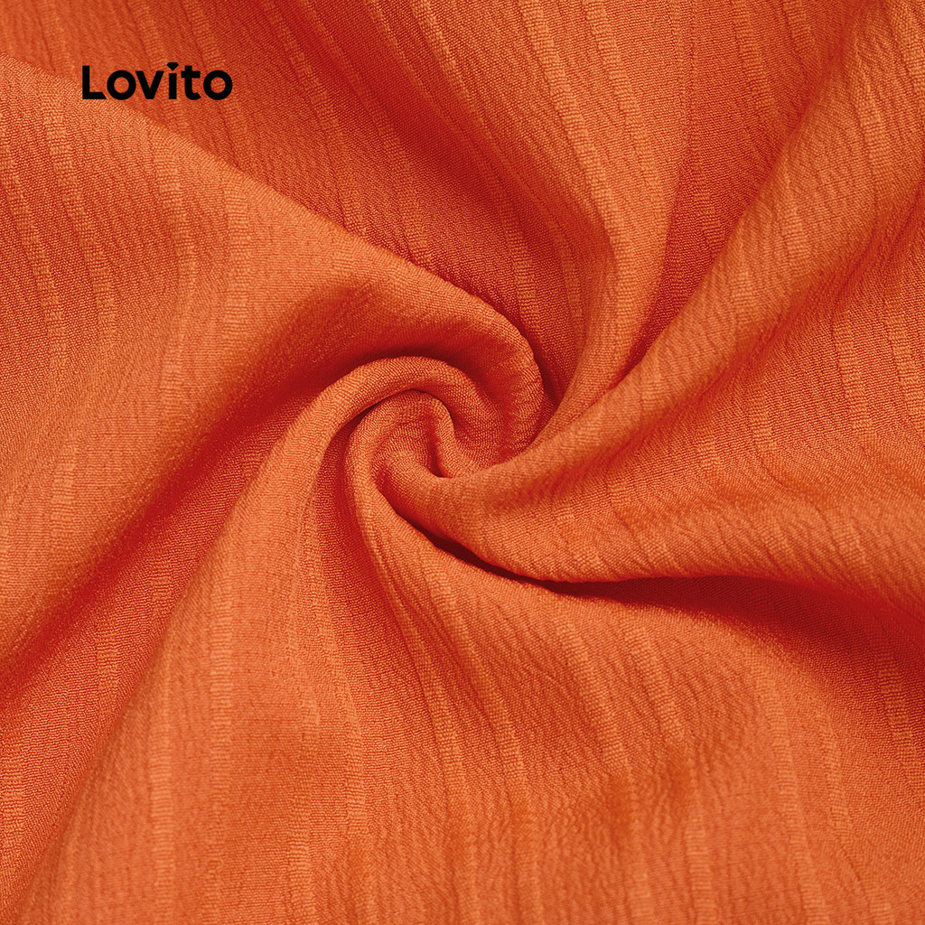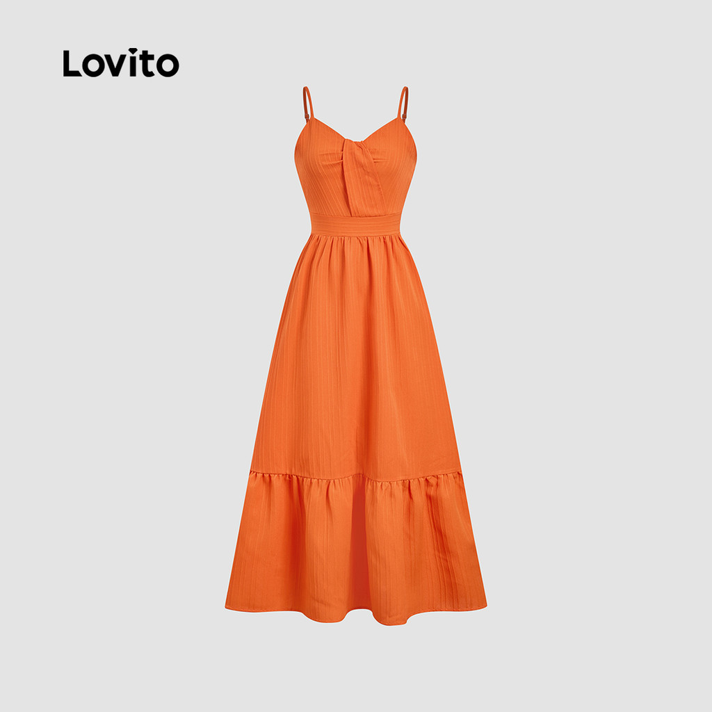 Lovito Vestido Elegante Babado Na Bainha Linha Estrutura Primavera/verão Vestido Laranja para mulheres. LBL33017