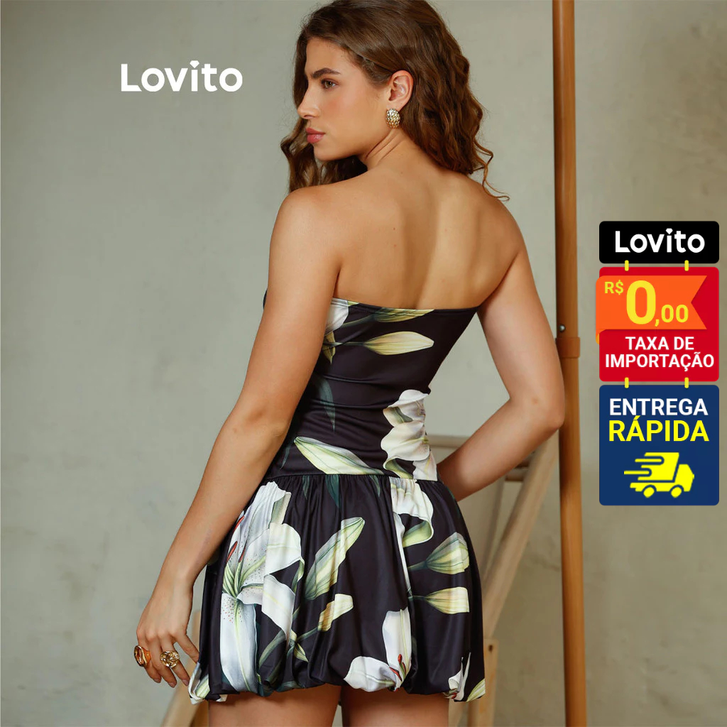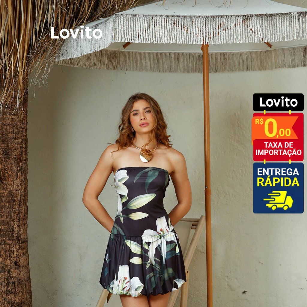 Lovito Bossa l Vestido Feminino Tomara que Caia Mini Balonê Estampa Lírio Floral LB376BRL405