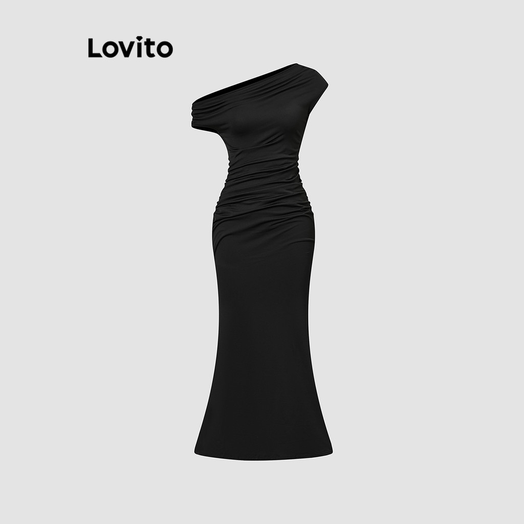 Lovito Vestido feminino elegante com corte assimétrico L112ED479