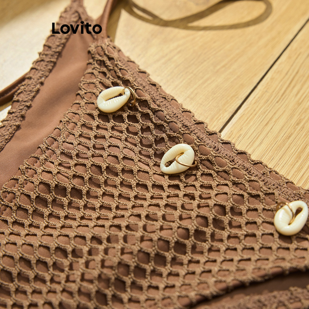 Lovito Conjuntos De Biquíni Boho Malha Lisa Contraste Feminino LBL18863