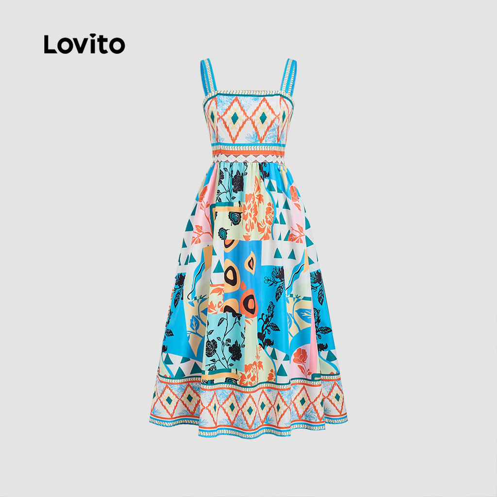 Lovito Refine Vestido Boho Plissado Feminino Primavera Verão LBL30278