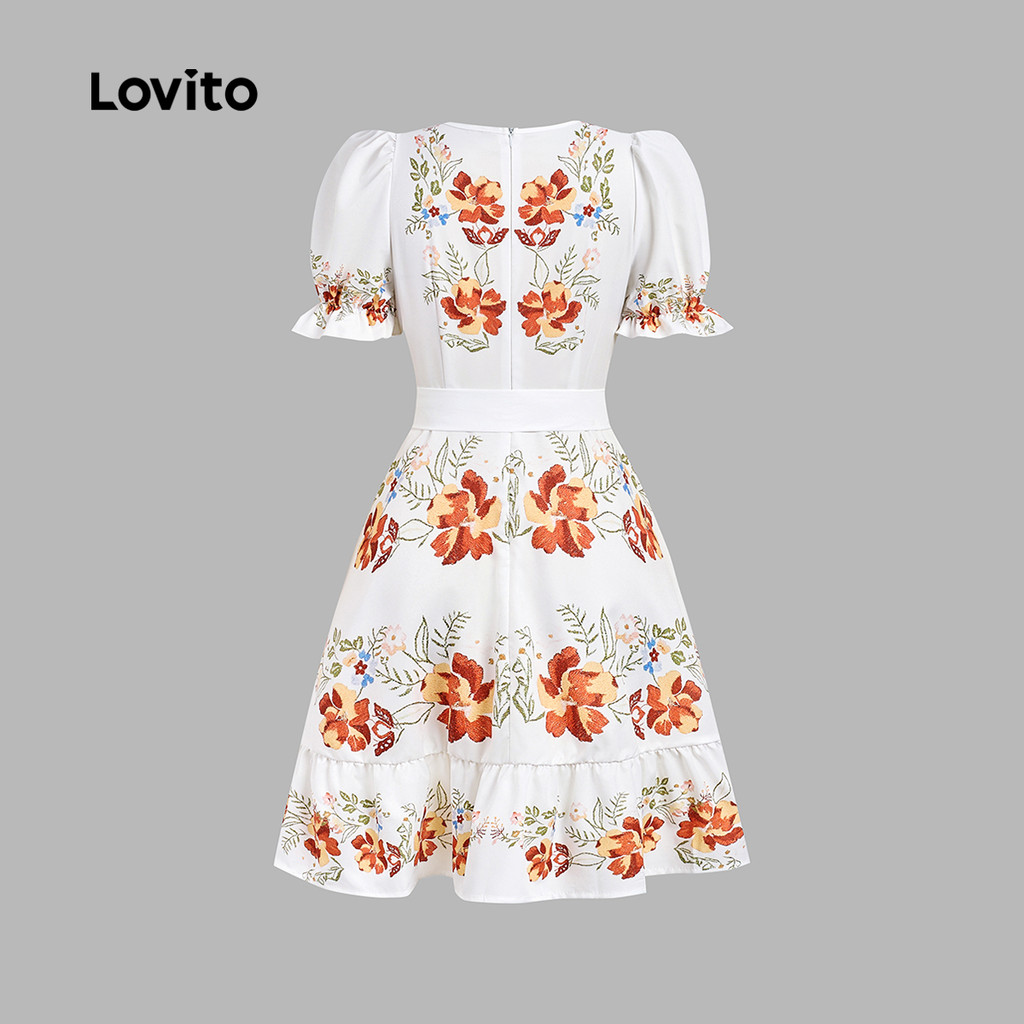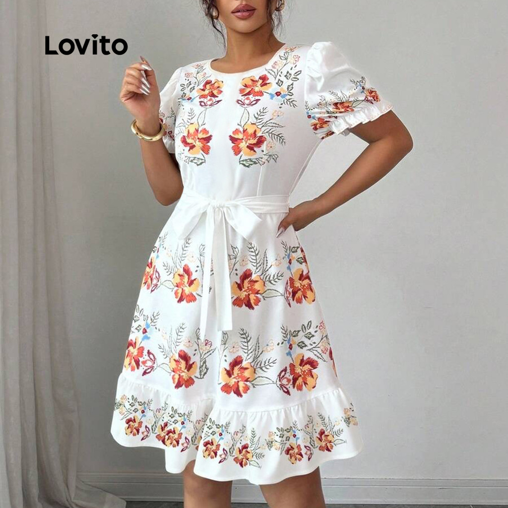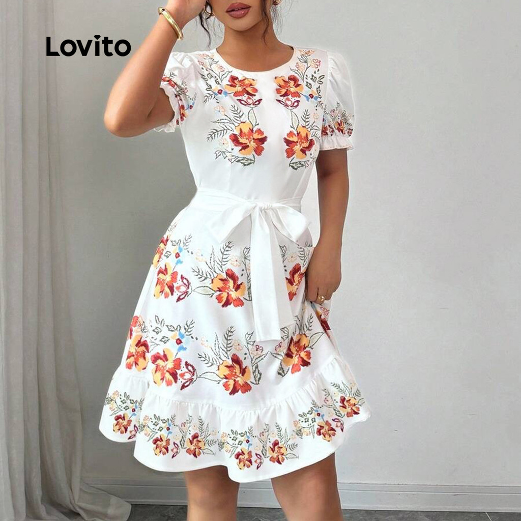 Lovito Vestido Boho com Laço Na Frente em Camadas e de Primavera/verão para Mulheres LBL30236