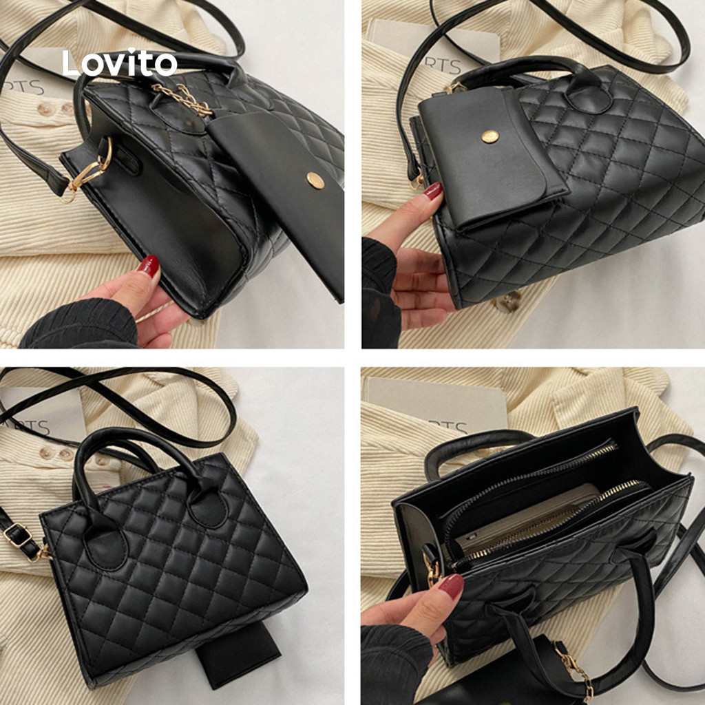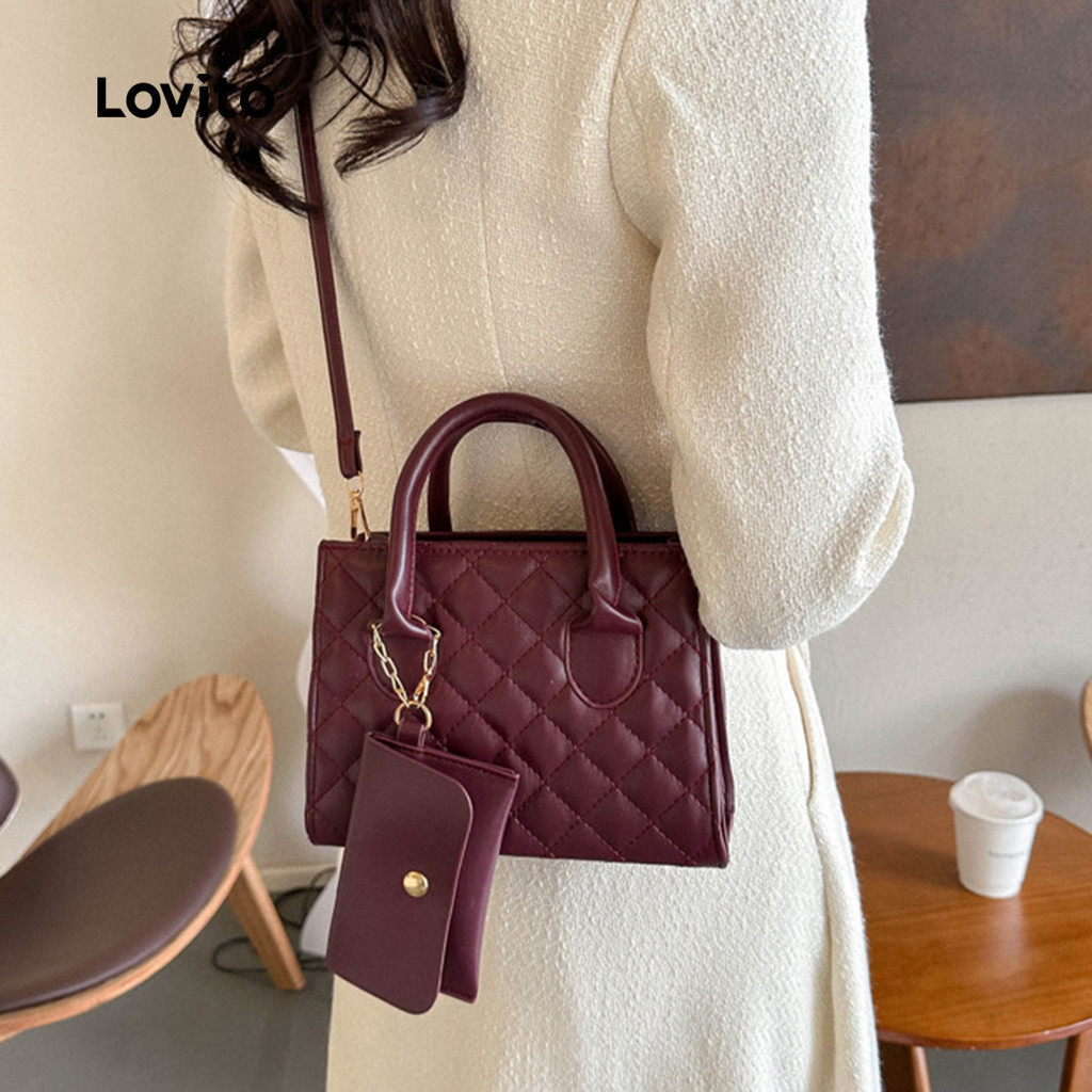 Lovito Bolsa de Ombro Pequena com Padrão de Diamante Casual para Mulheres LFA101045