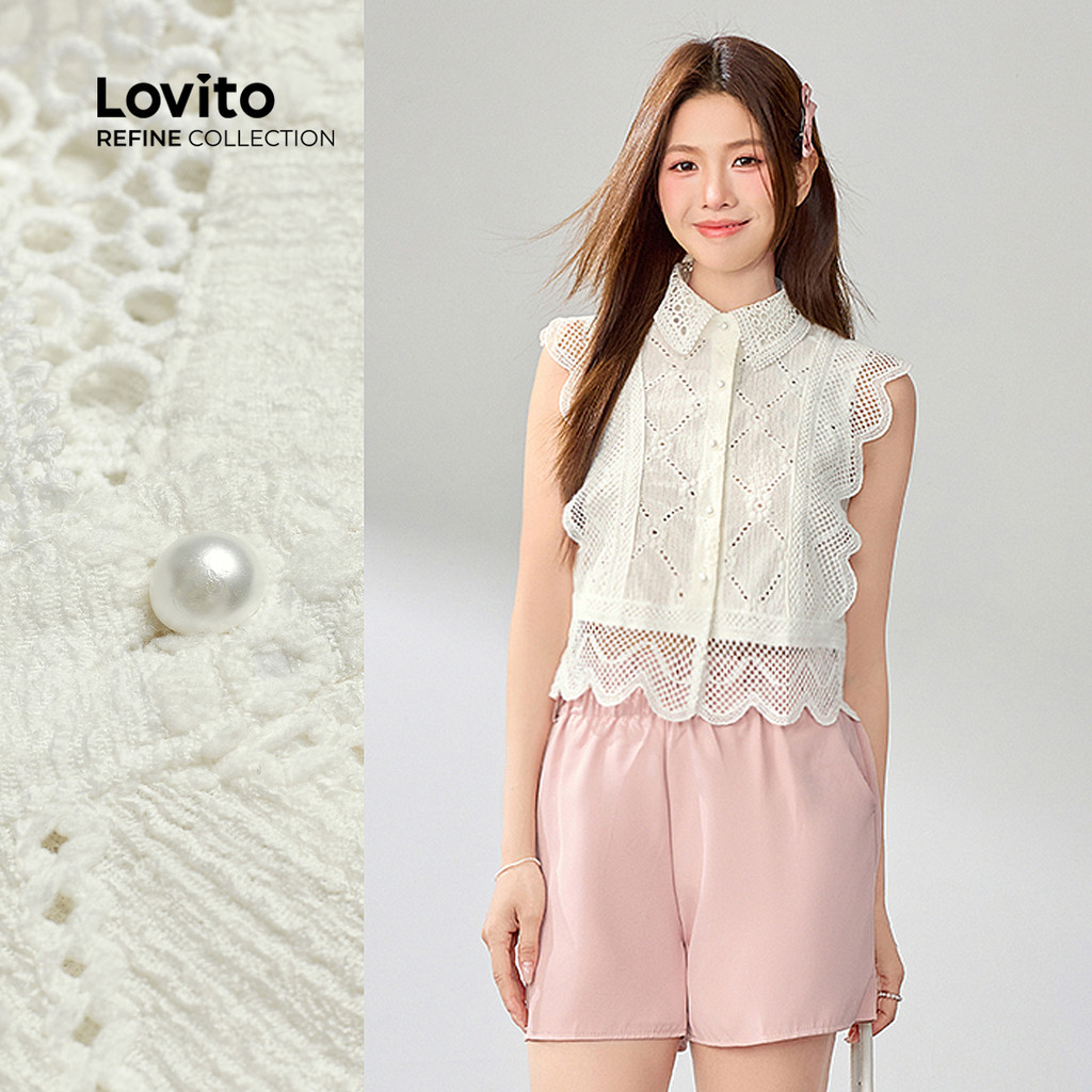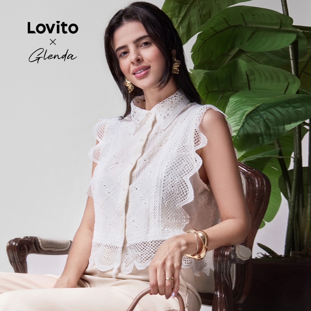 Lovito x Glenda RefineTop Casual De Renda Regata Feminina Para O Verão/primavera LR2AD066