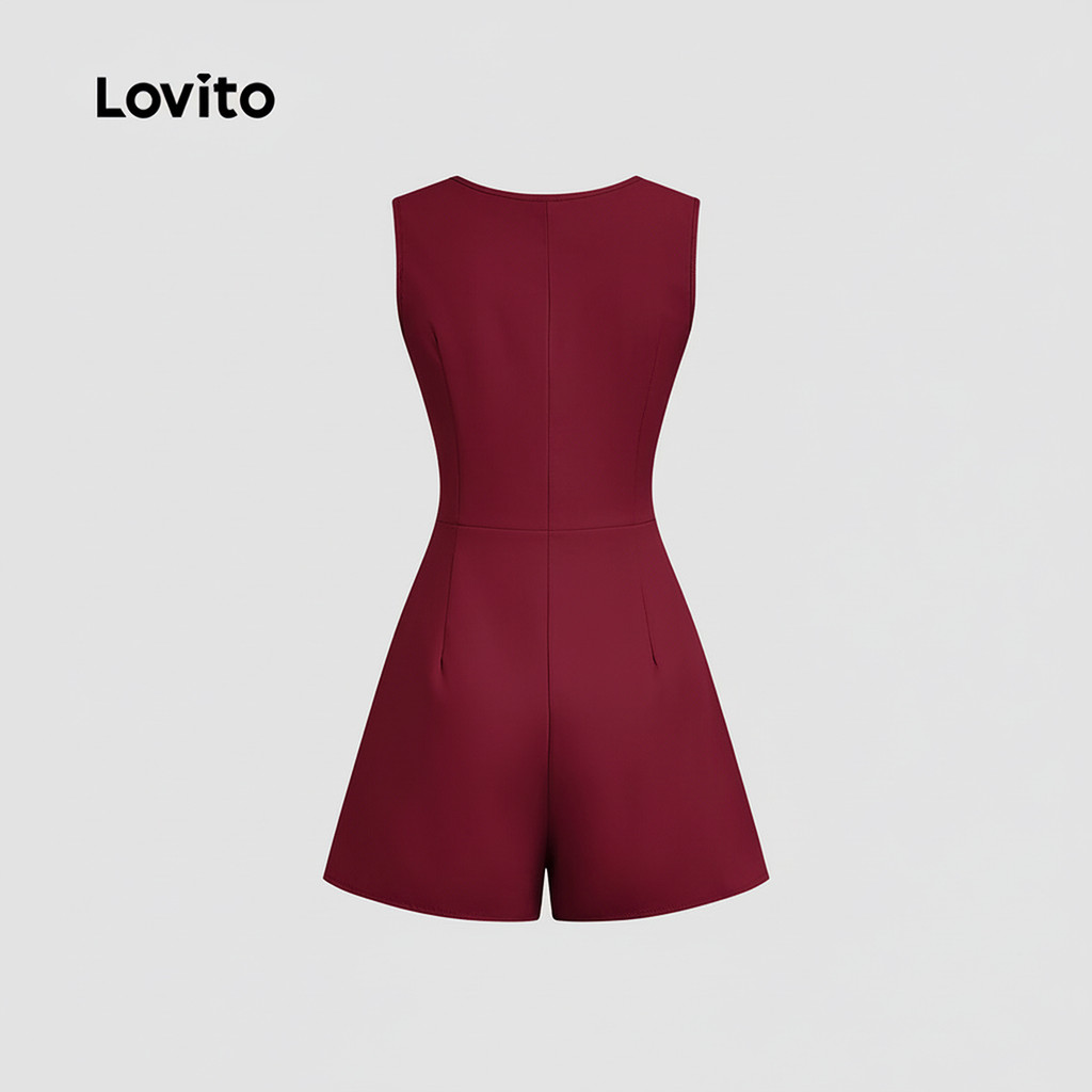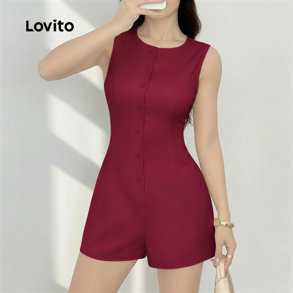 Lovito Macacão Casual De Festa Com Botões Vermelhos Estilo Cáqui Para Mulheres Ideal Para Primavera/verão L164ED409