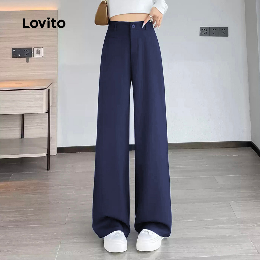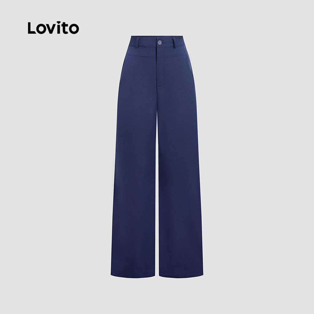 Lovito Calça Casual Simples Primavera/verão Calça Azul-marinho para Mulheres L172ED075