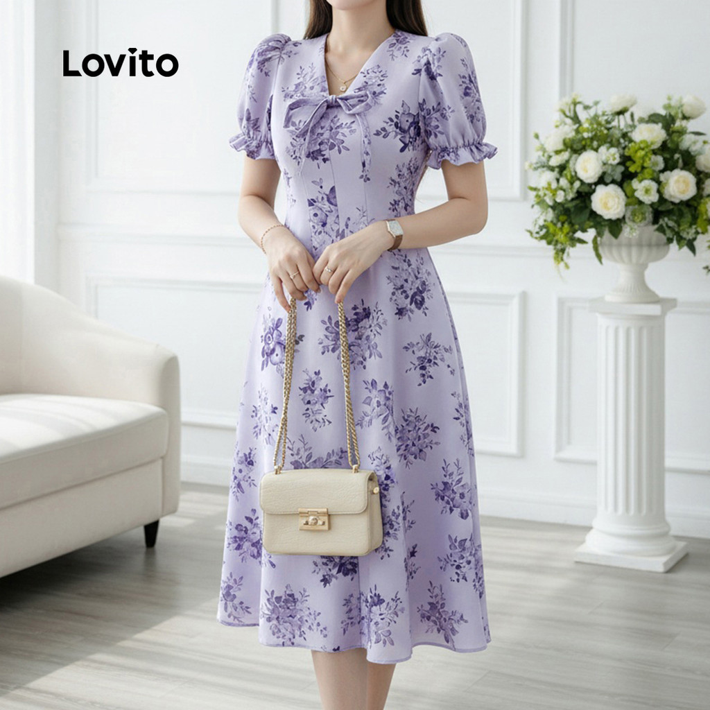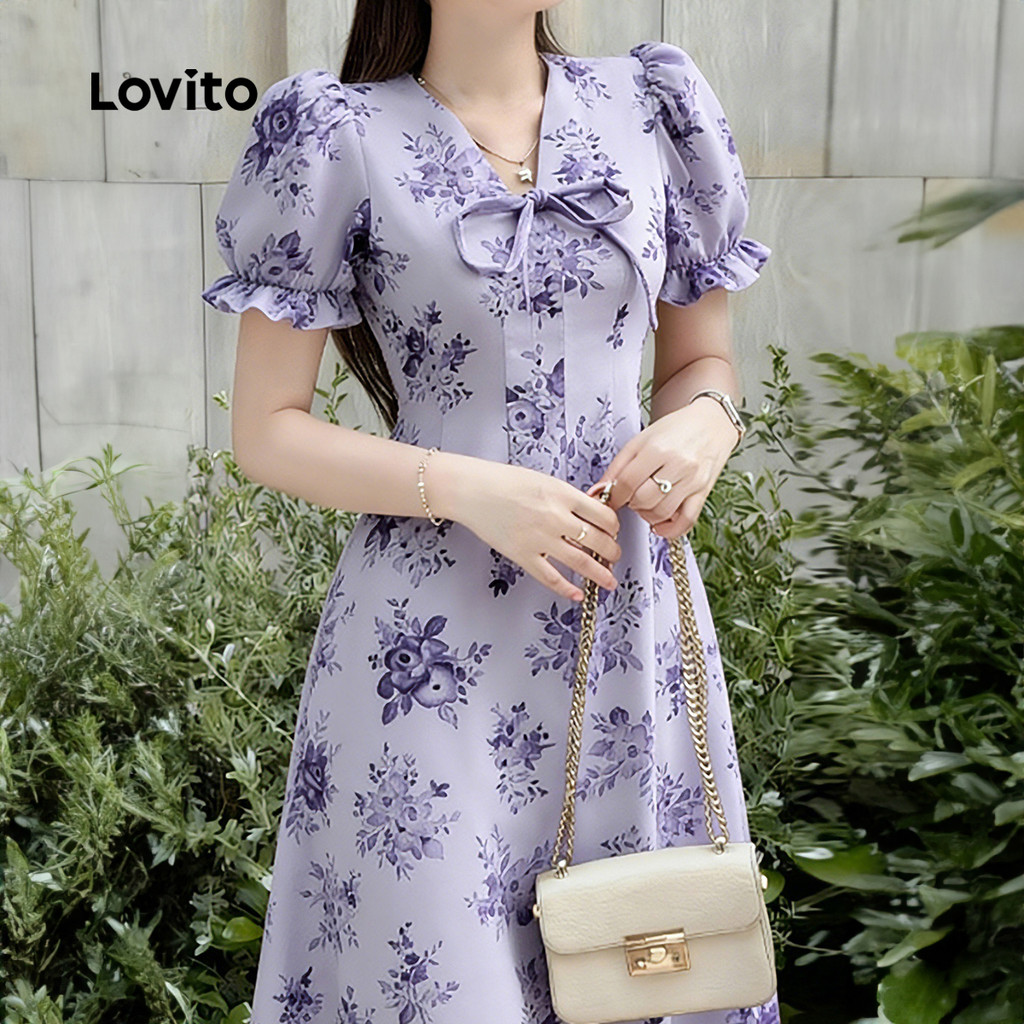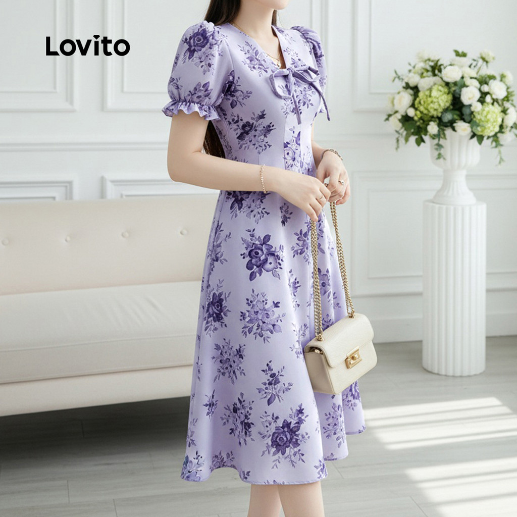 Lovito Vestido Casual com Renda e Flores para Primavera/verão Feminino LK4ED1551