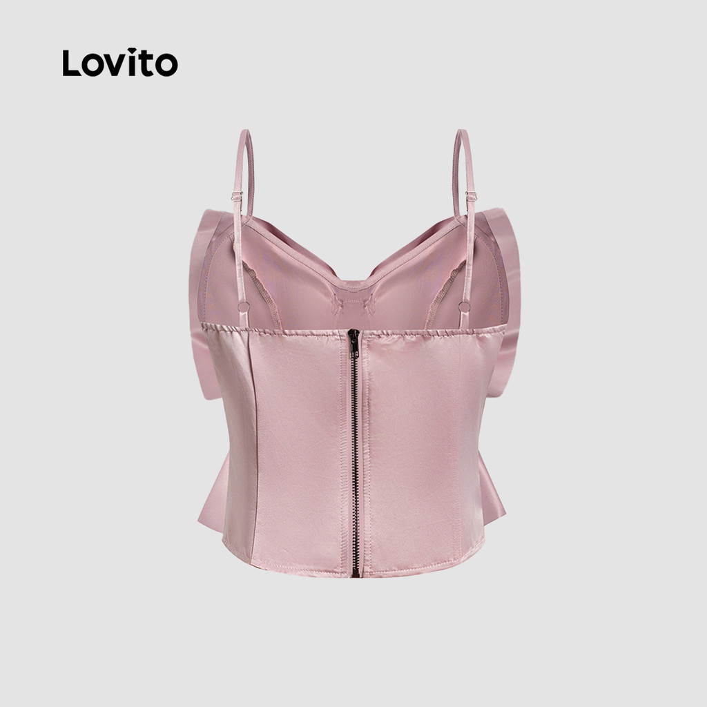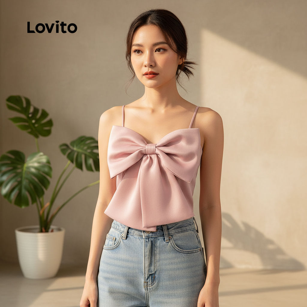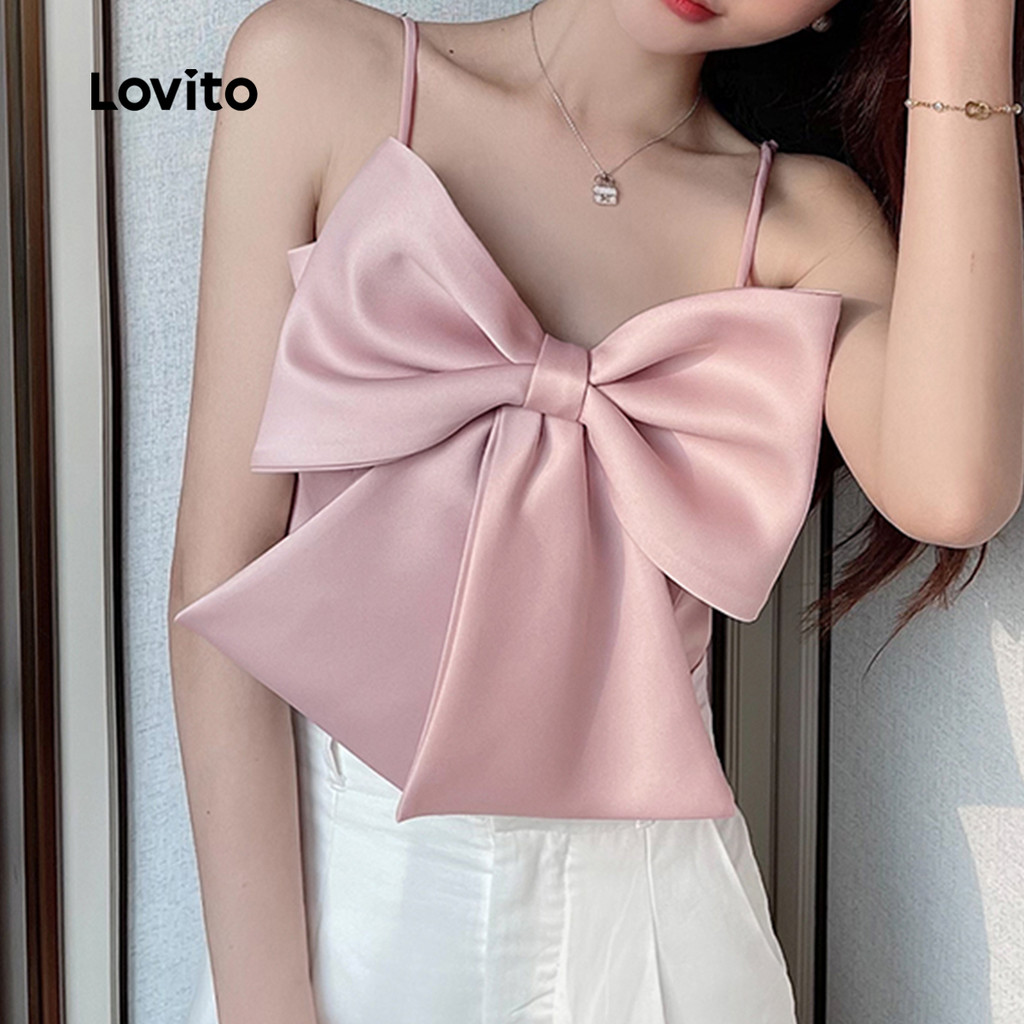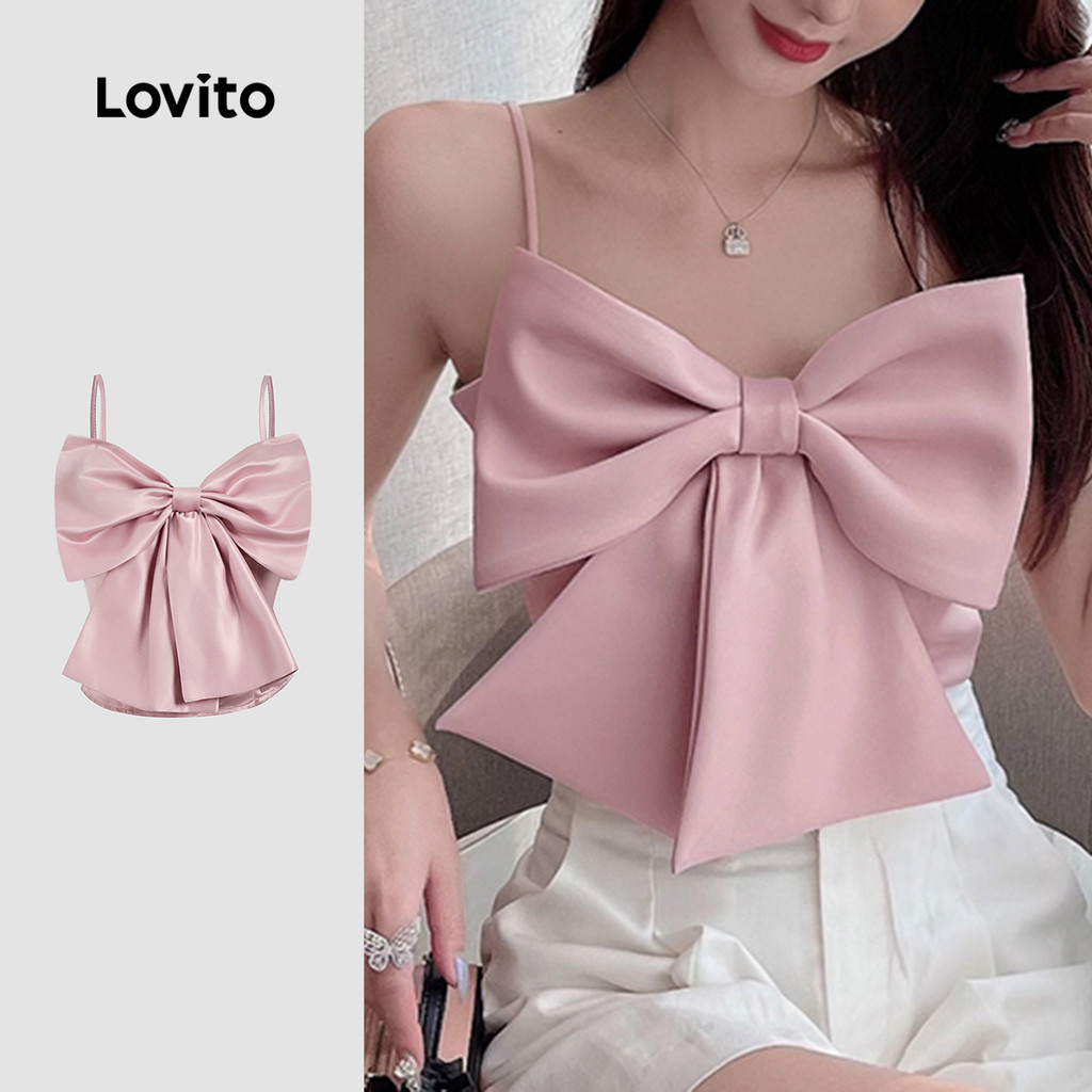 Lovito Refine Top Casual Feminino com Laço Rosa para Primavera Verão L165ED1449