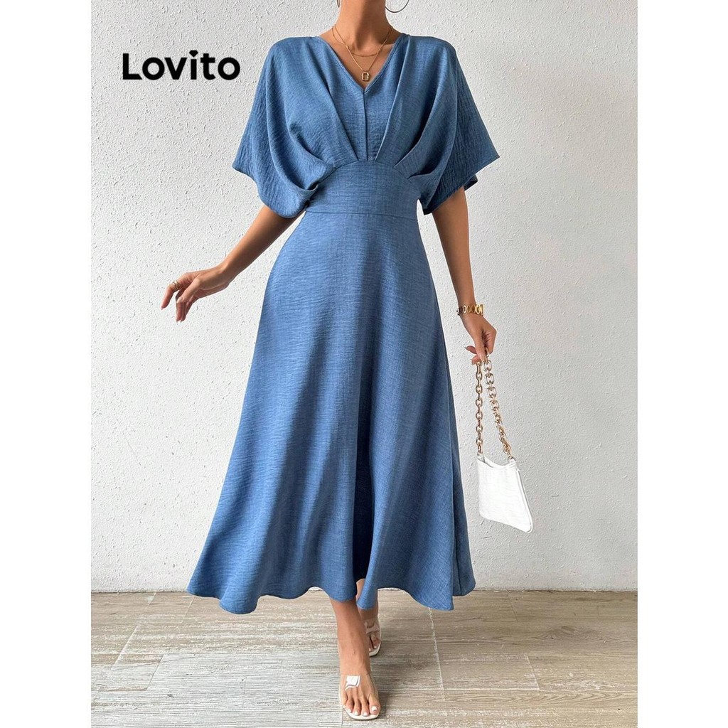Lovito x Glenda Vestido Elegante Com Linha De Estrutura Plissada Vestido De Verão/Primavera Para Mulheres LNL83157