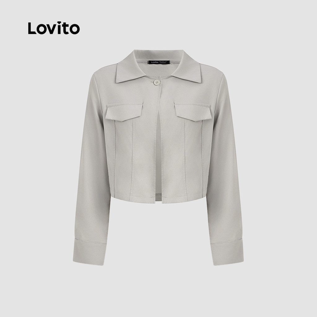 Lovito Jaqueta Casual Cinza Com Bolsos Falsos E Estrutura Reforçada Para O Outono/inverno Ideal Para Mulheres L166AD418