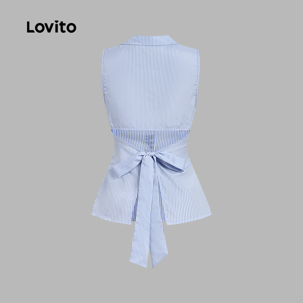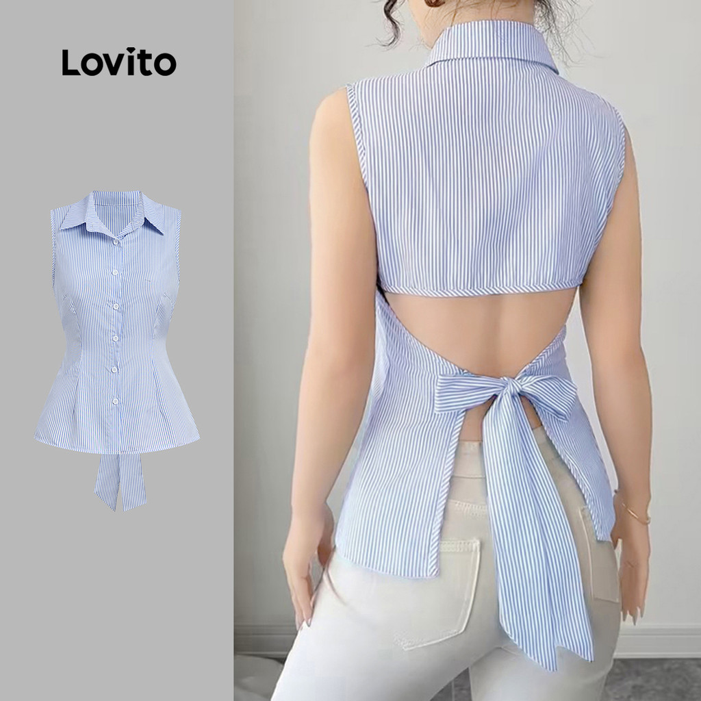 Lovito Casual Top Corte Casual Nas Costas Nó Laço Botão Frontal Top Primavera/verão para Mulheres L178ED2154