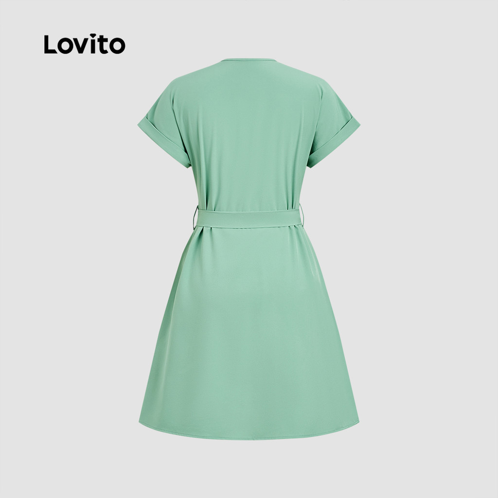 Lovito Vestido Verde Feminino com Bolso e Cinto Casual para Primavera/Verão LBL32130