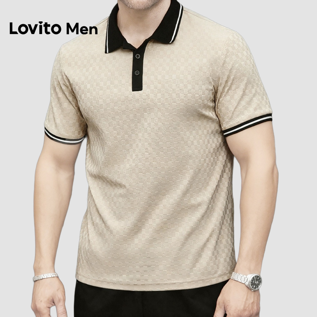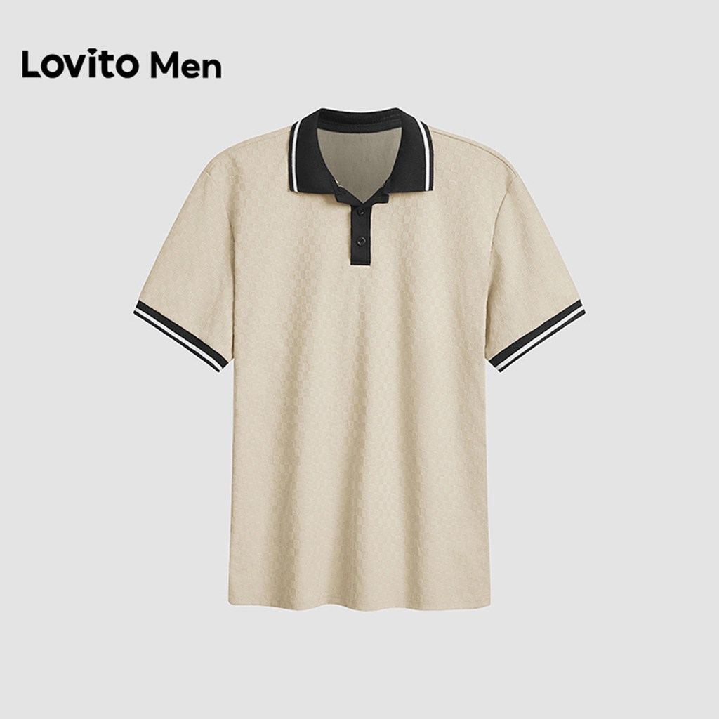 Lovito Men Camisa Polo Casual Colorida Primavera/verão Khaki para Homens L169ED034
