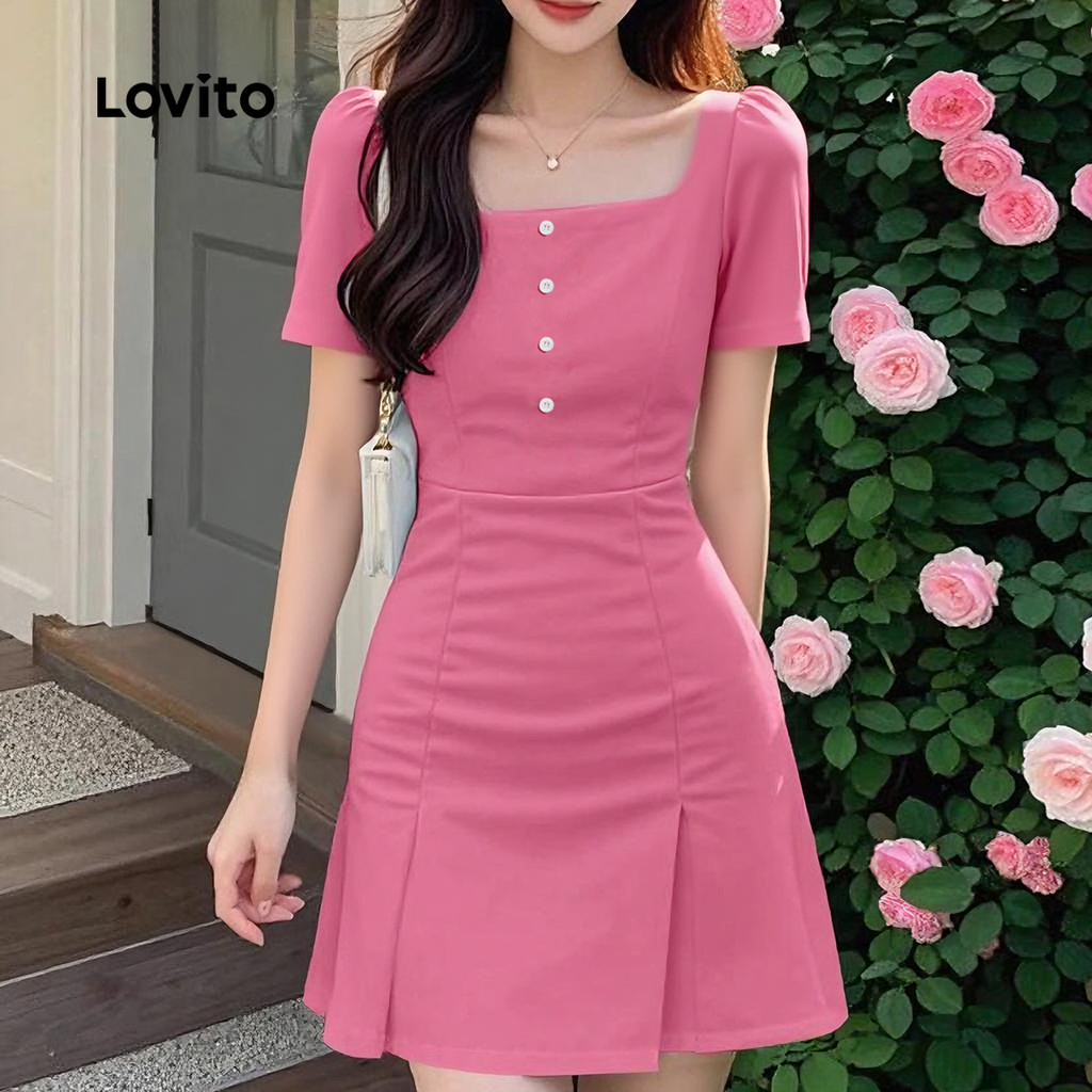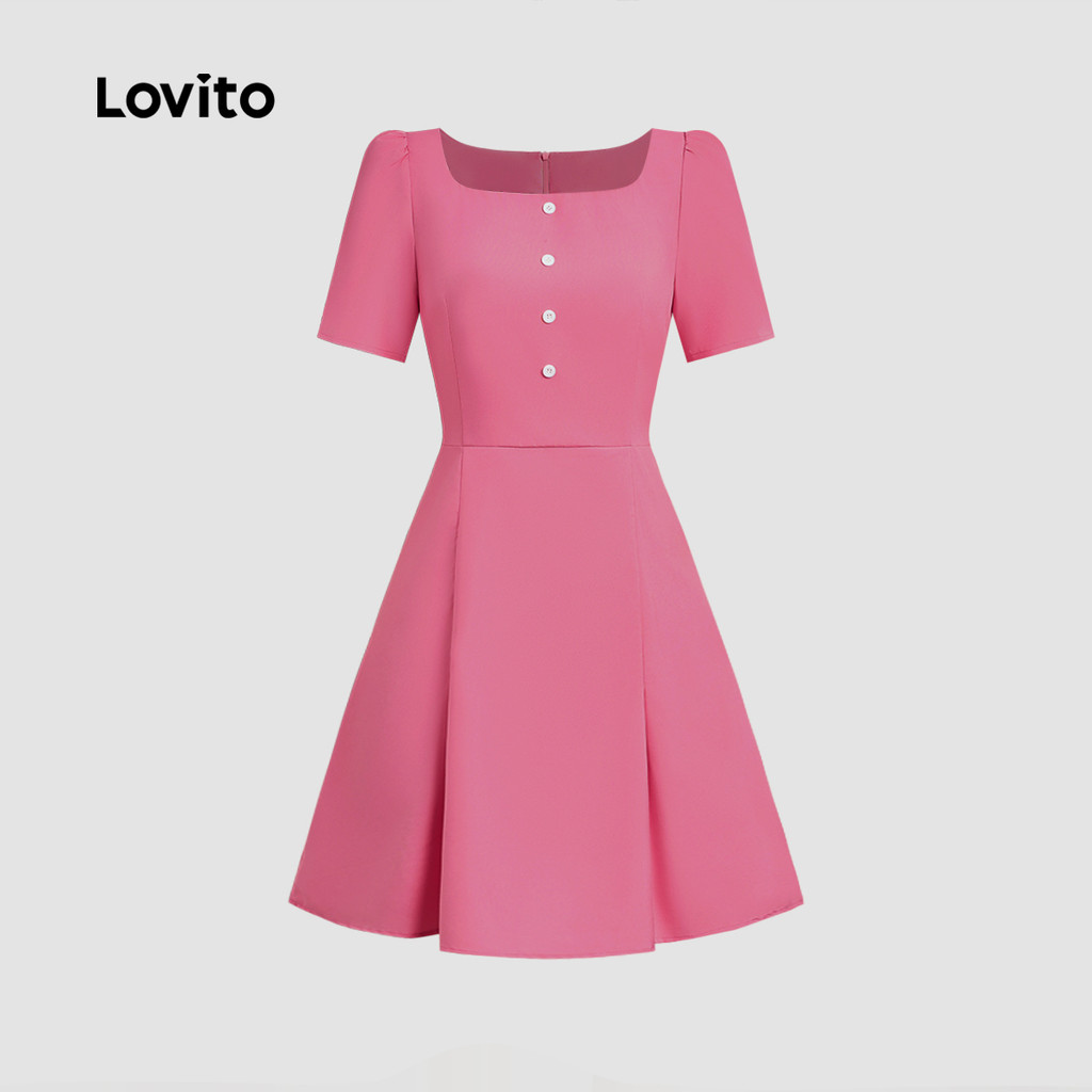 Lovito Vestido Elegante com Botões Na Frente para Primavera/verão Rosa para mulheres L154LD402
