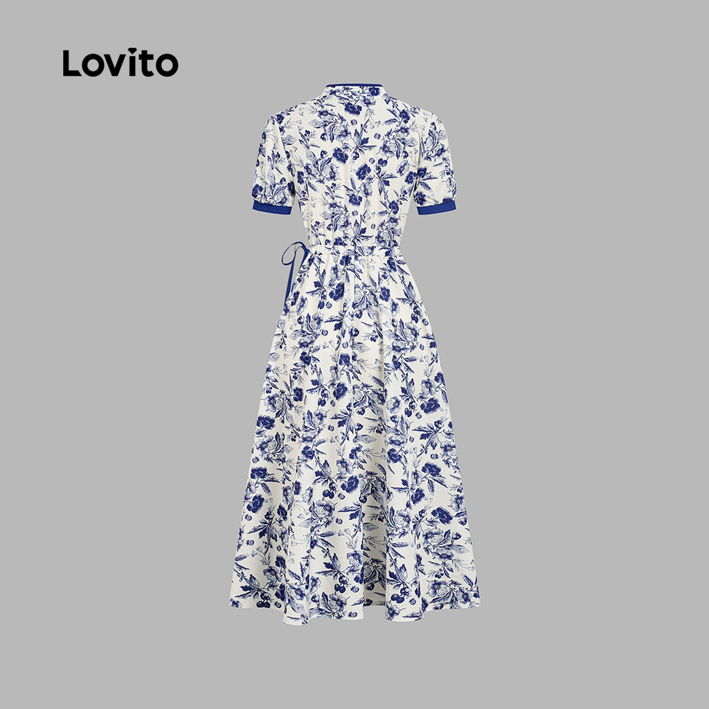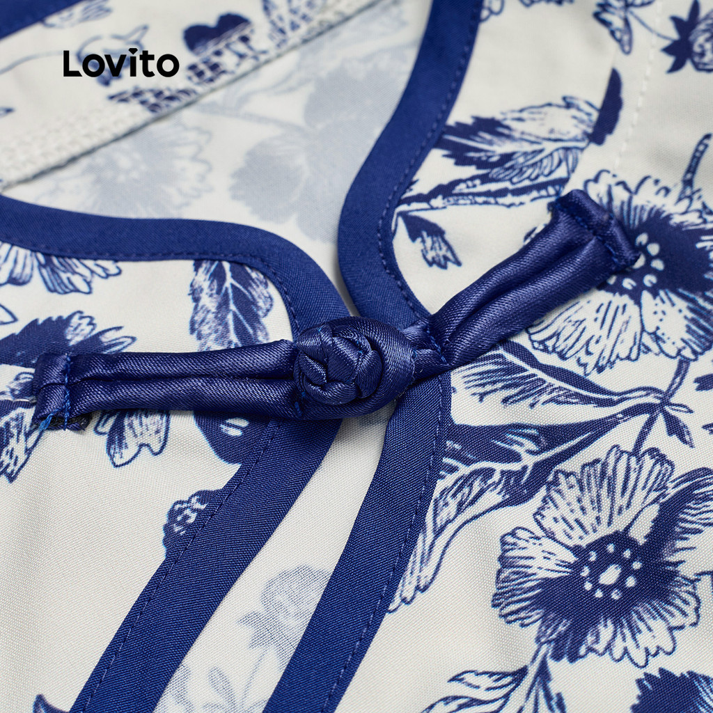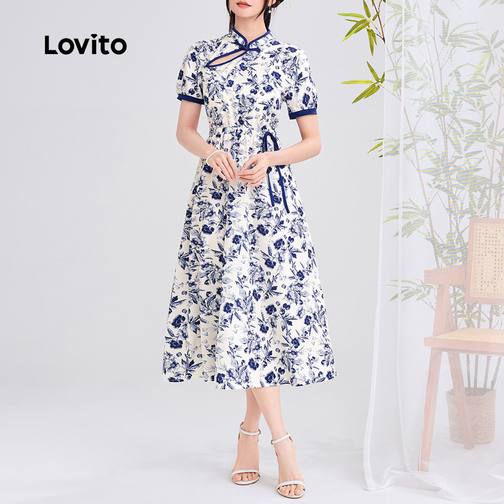 Lovito Vestido Elegante Flores Novo Estilo Chinês Primavera/verão para Mulheres L165ED190