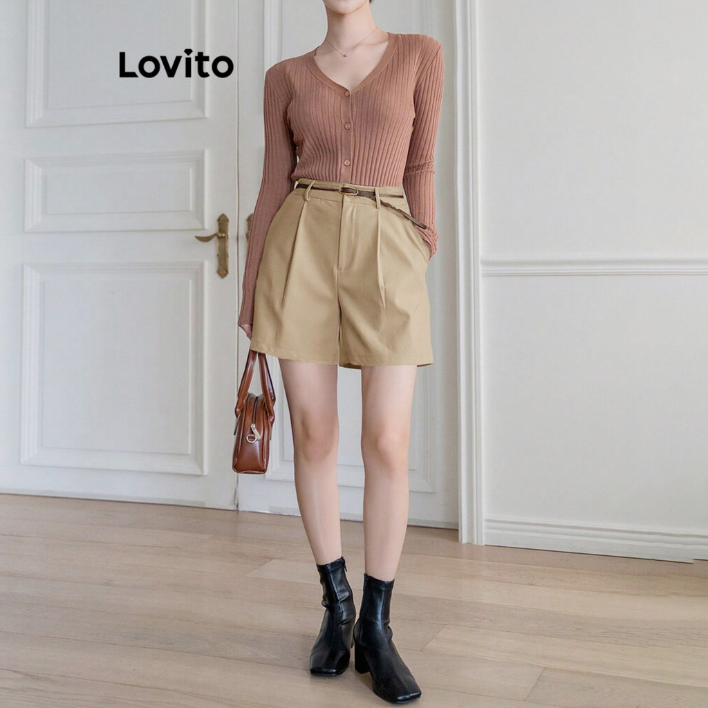 Lovito Shorts Femininos Elegantes Plissados de Verão L104ED120