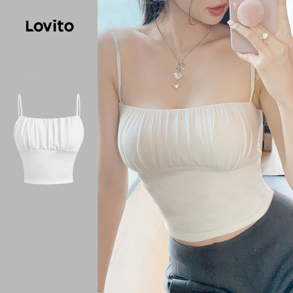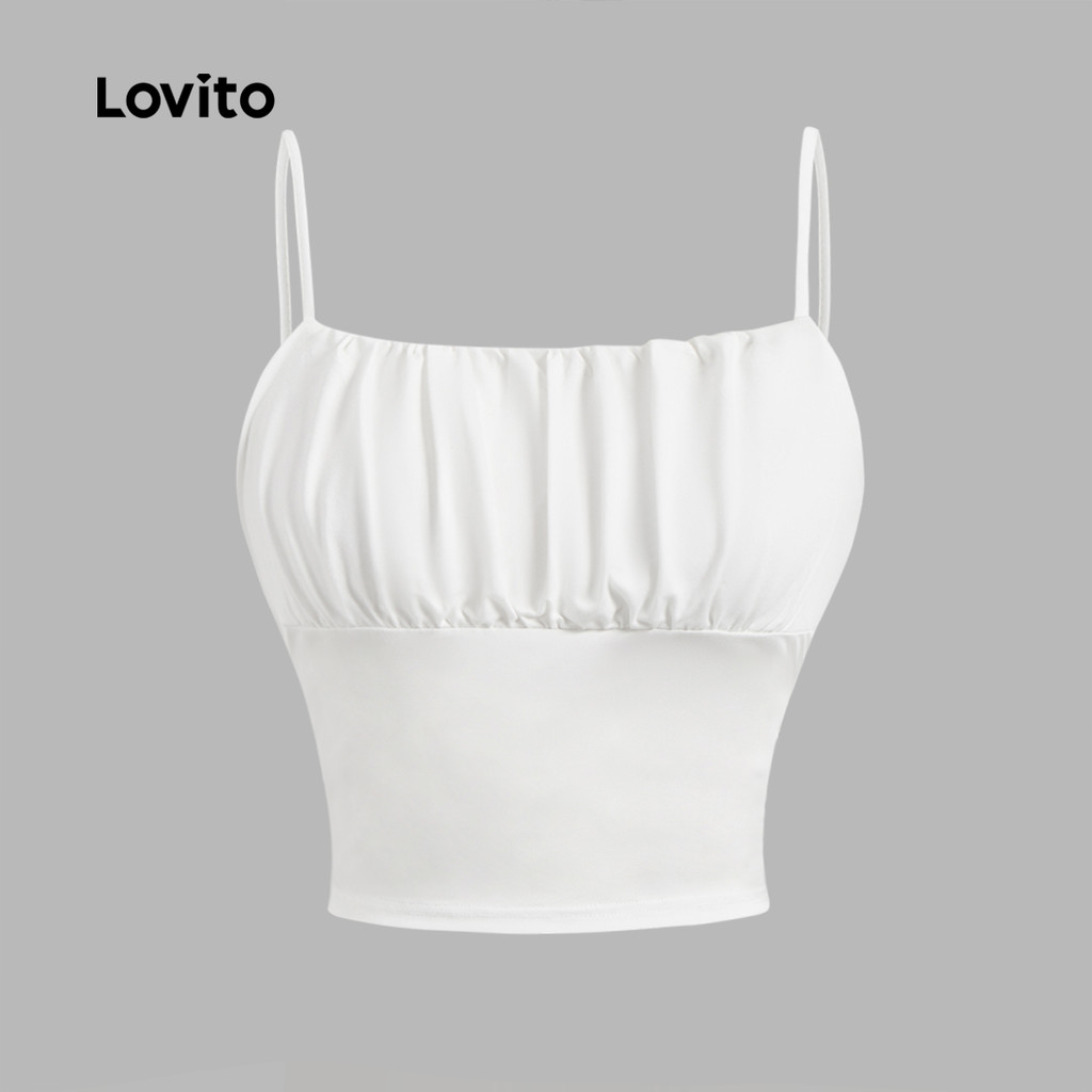 Lovito Top Básico Plissado Verão/primavera Regata Feminina L129ED544