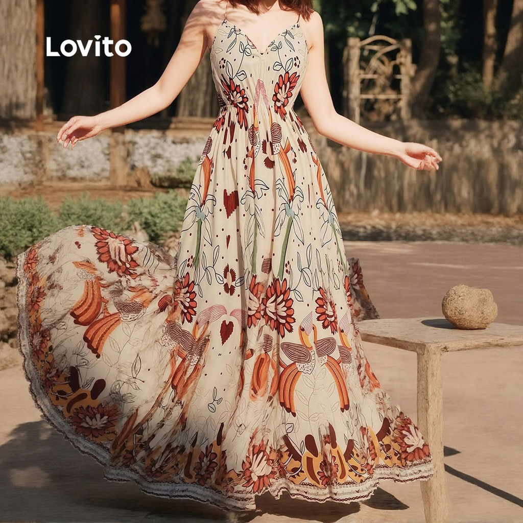 Lovito Vestido Boho com Laço para Primavera/Verão Feminino LBL29123