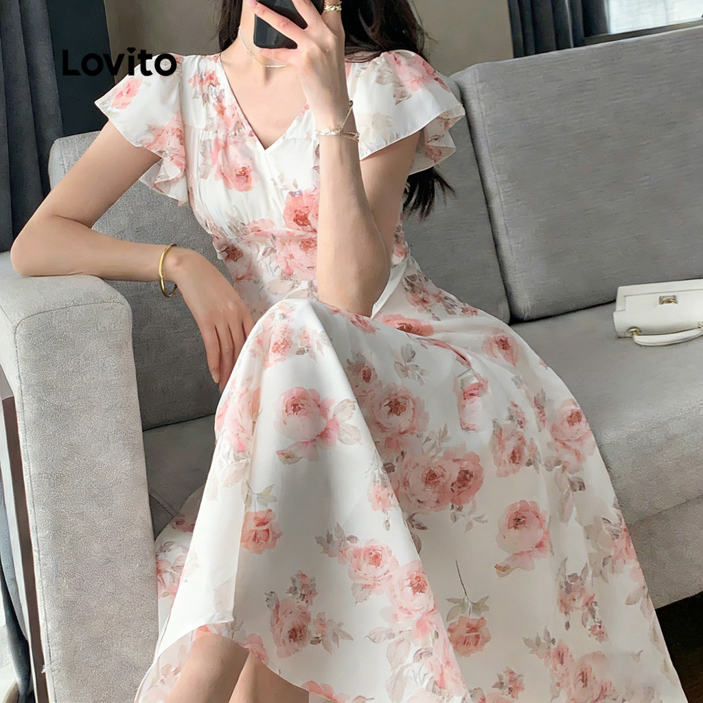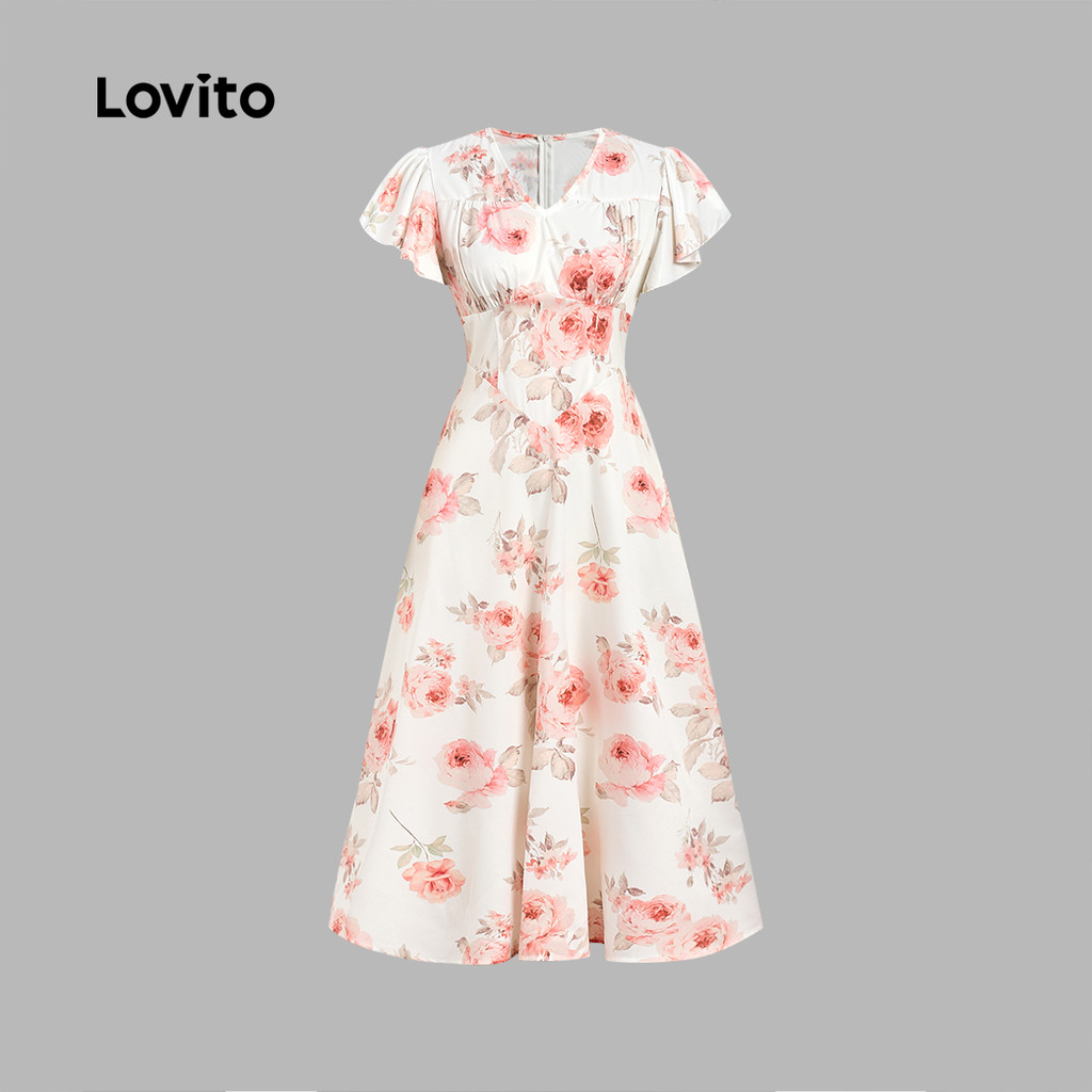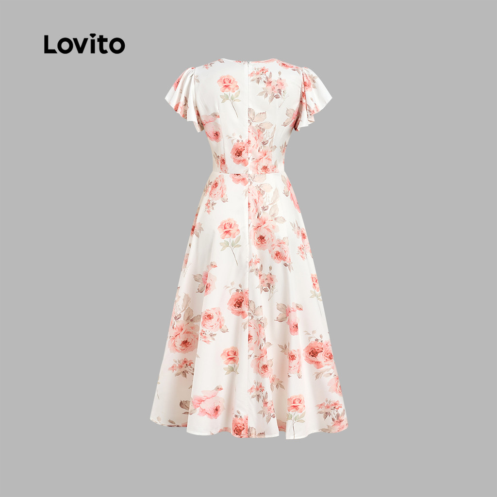 Lovito Vestido Elegante com Babados para Mulheres Primavera/Verão LBL33063