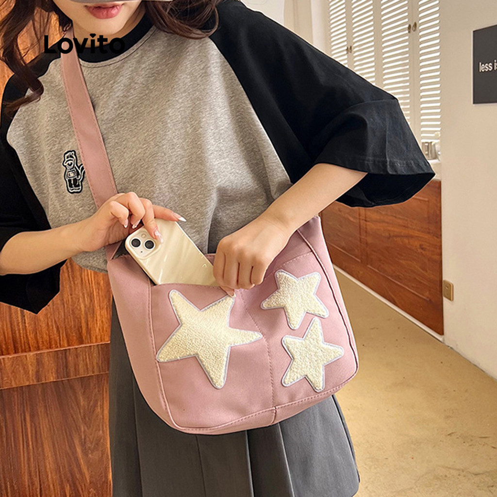 Lovito Bolsa De Ombro Feminina Estilo Coreano Casual Com Estampa De Estrela LFA107040