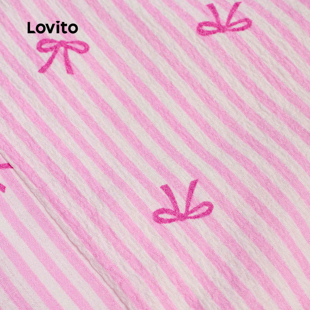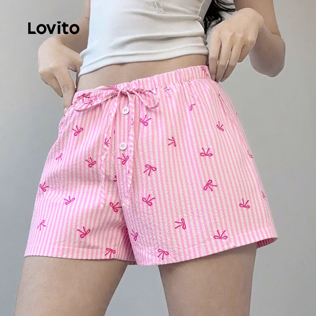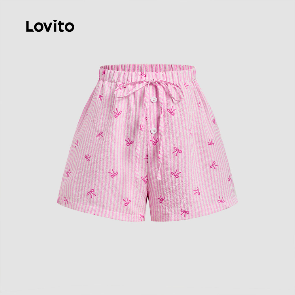 Lovito Shorts Casuais com Amarração Lateral de Listra Rosa Primavera/verão para Mulheres L178ED839