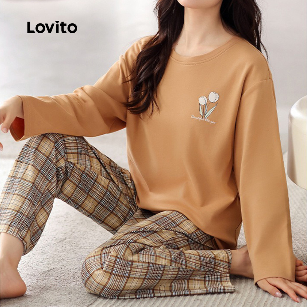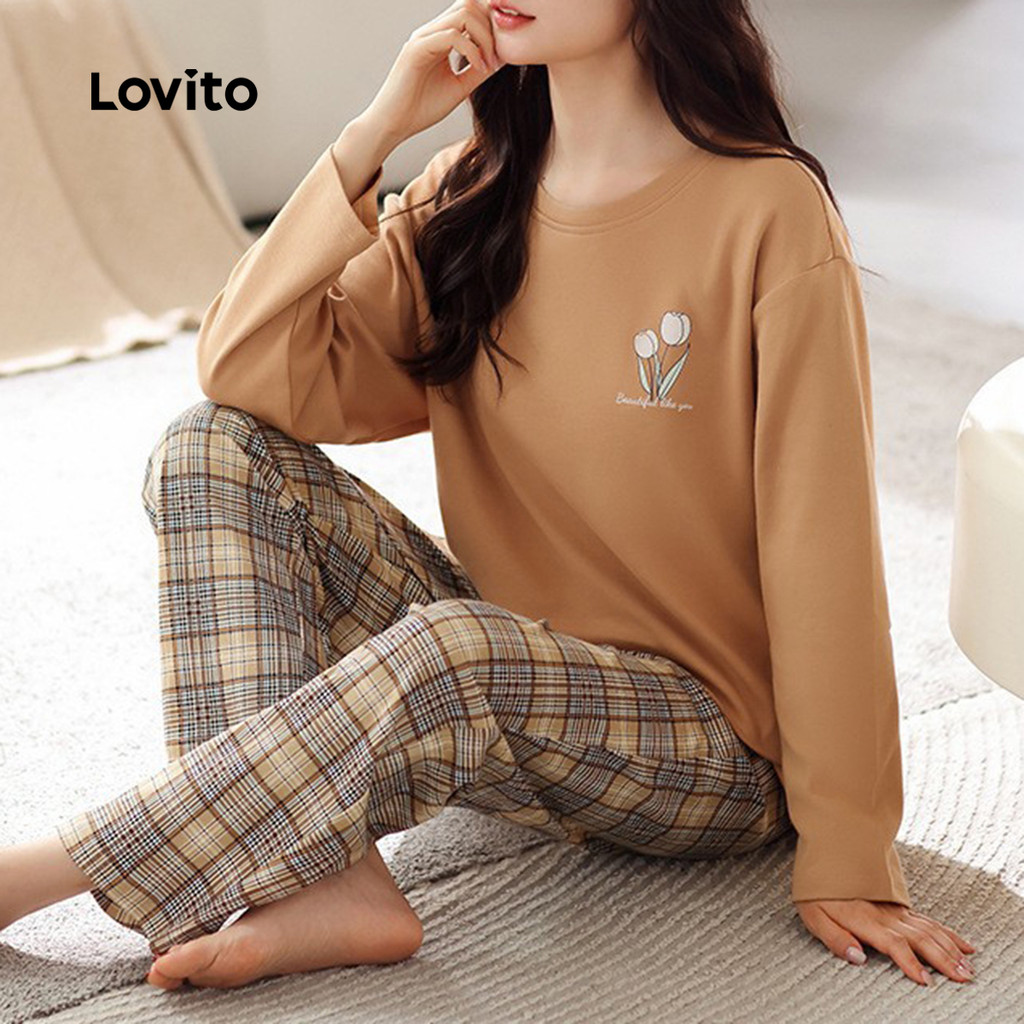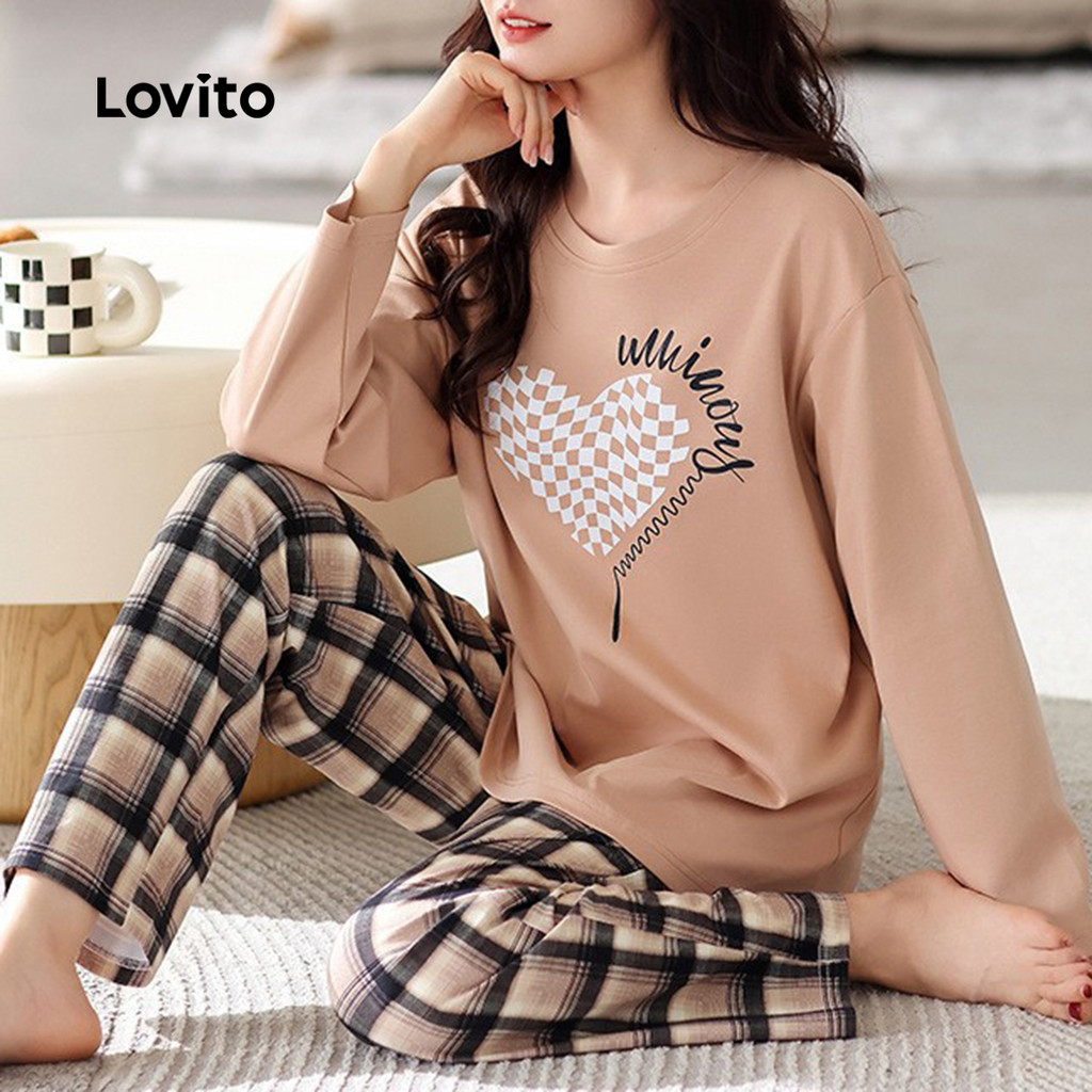 Lovito Conjunto de Pijama Casual 2 Peças Manga Longa Calça Coelho Branco Elegante Confortável para Mulheres LNE126008