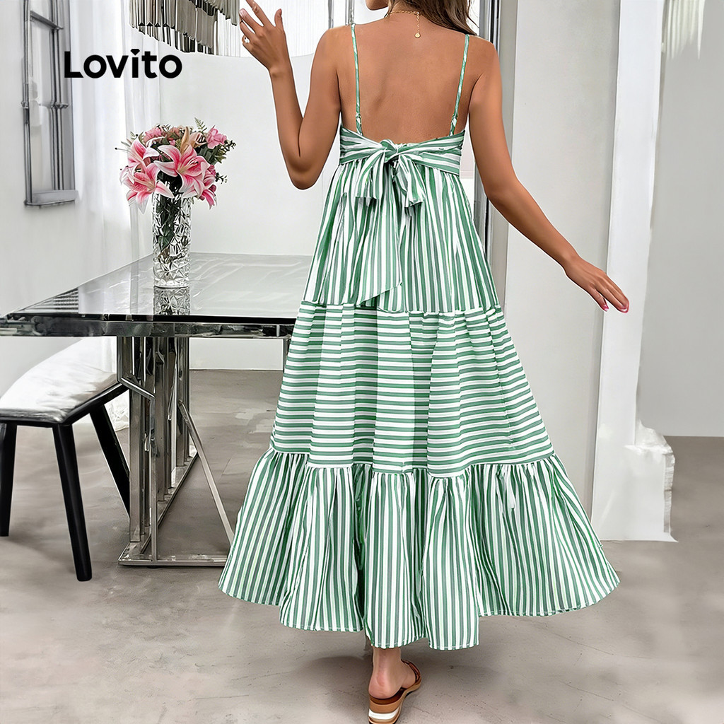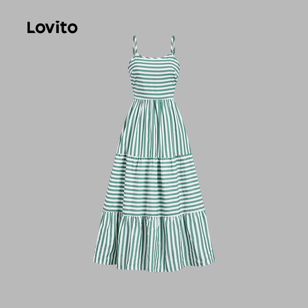 Lovito Vestido Longo Casual Estampado Estilo Resort Com Zíper Verde Para Mulheres Ideal Para Primavera/verão LBL32039