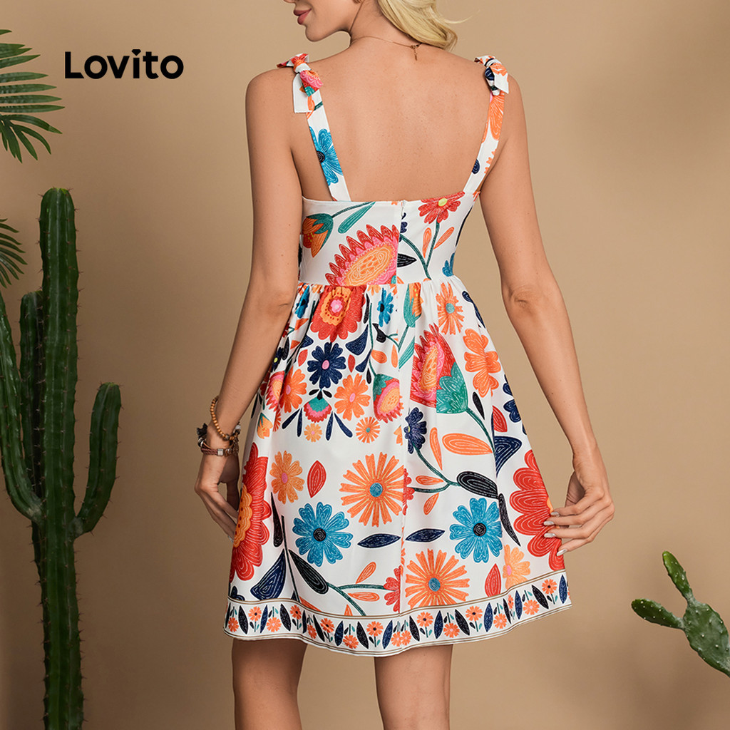 Lovito Vestido Boho Amarrar Na Frente Primavera/verão para Mulheres LBL32090