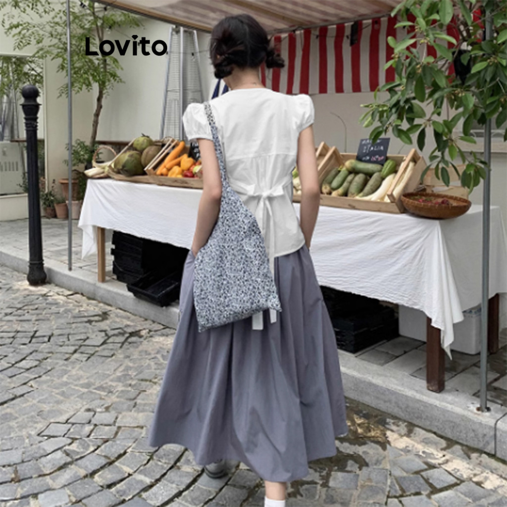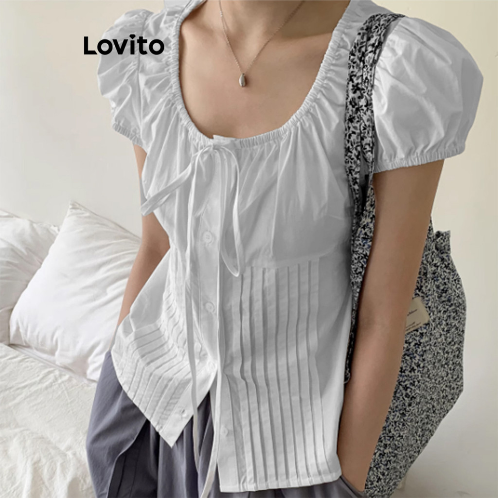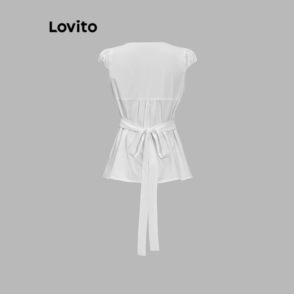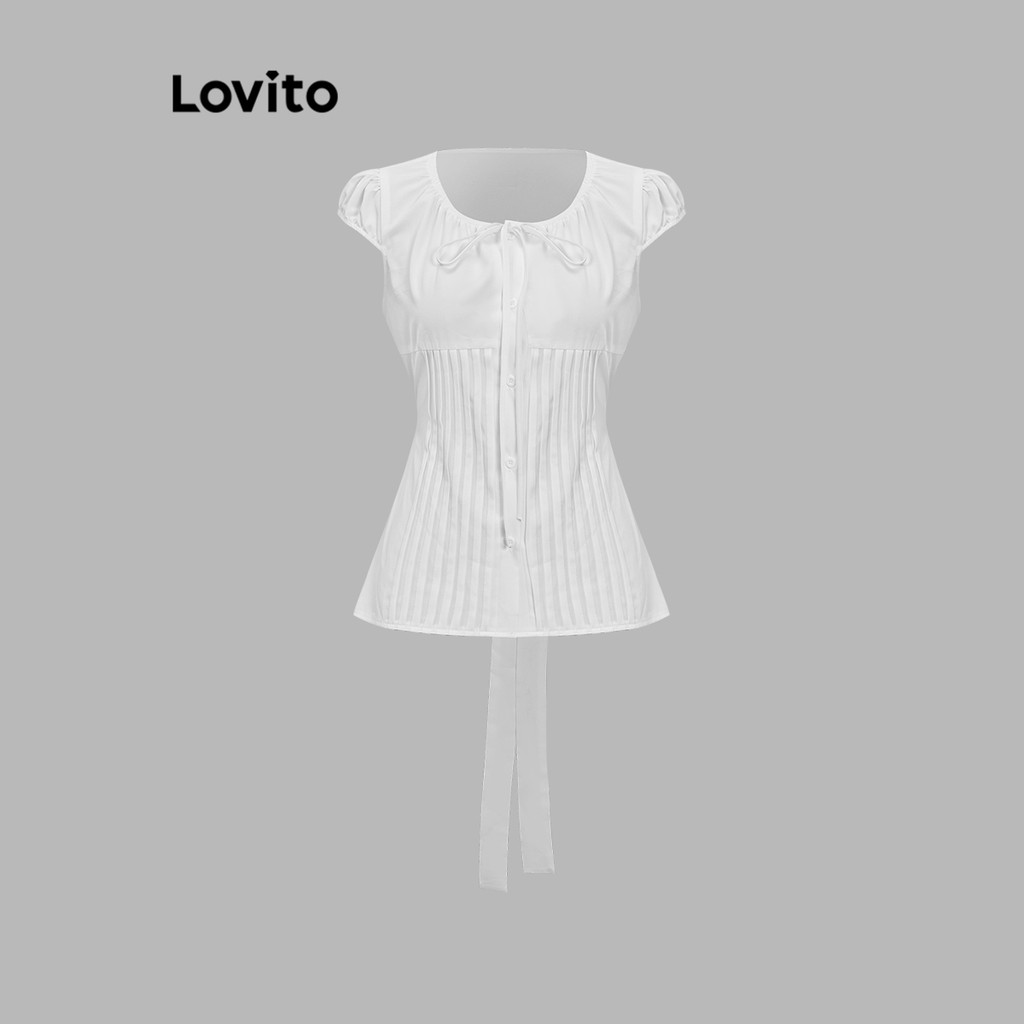 Lovito Blusa Casual Feminina Lisa Com Amarração E Plissada L85AD028 (Multicolorido)