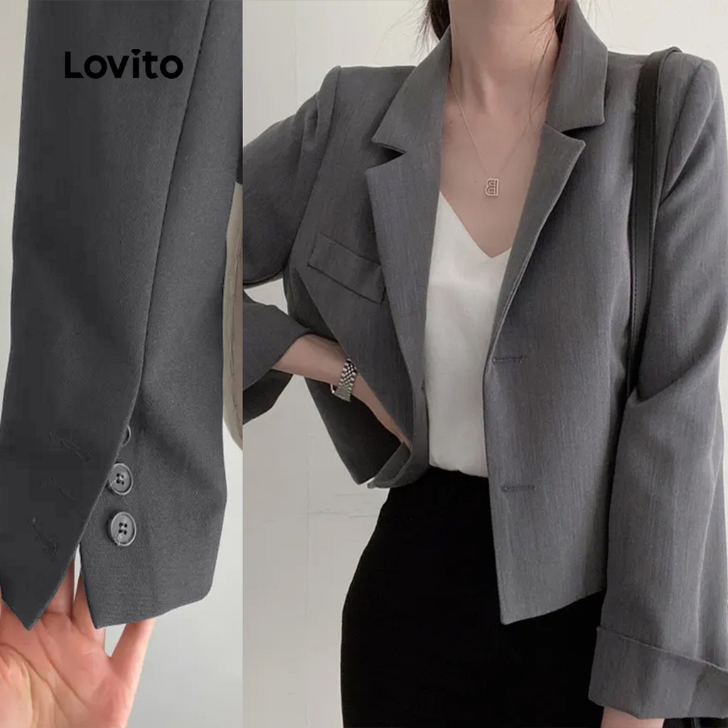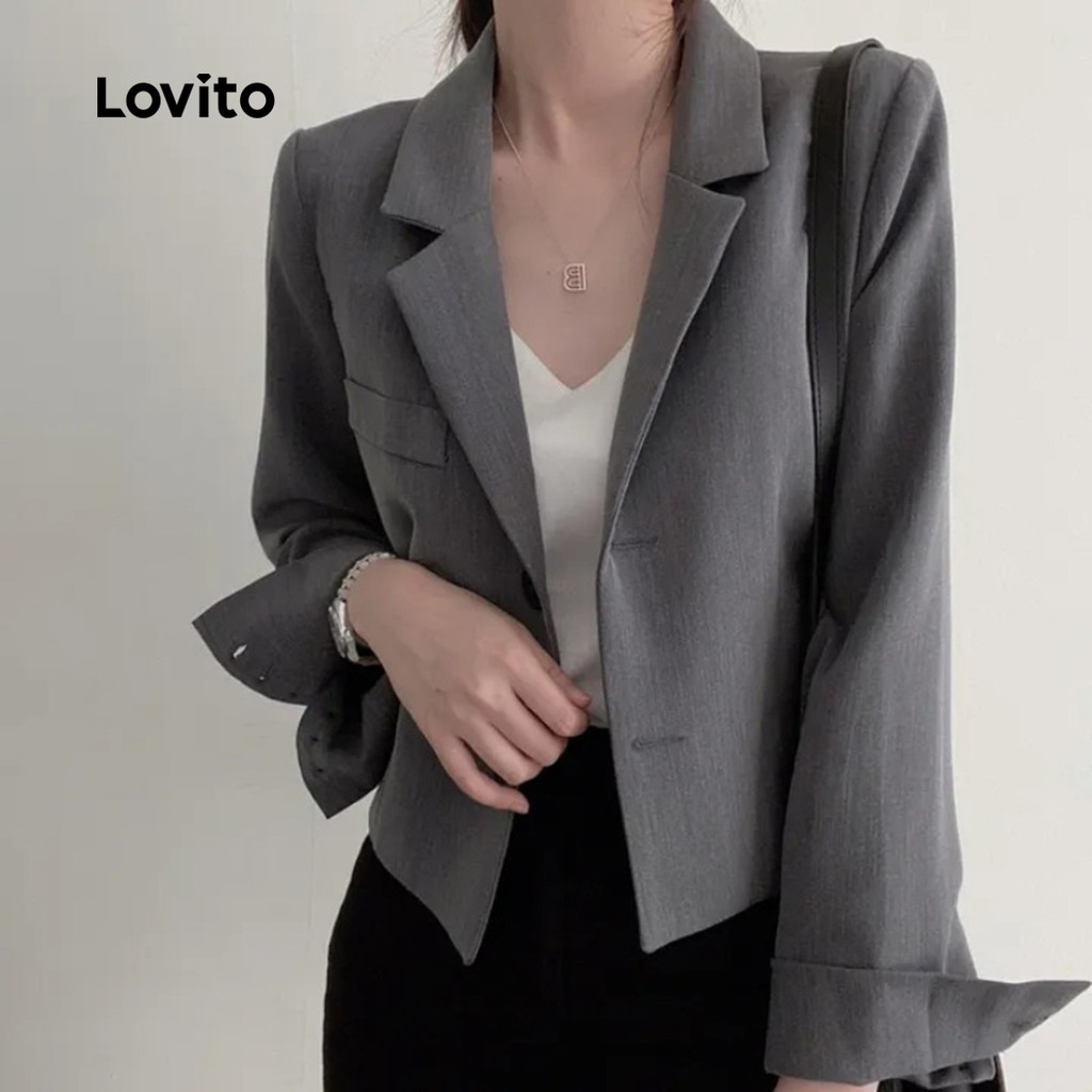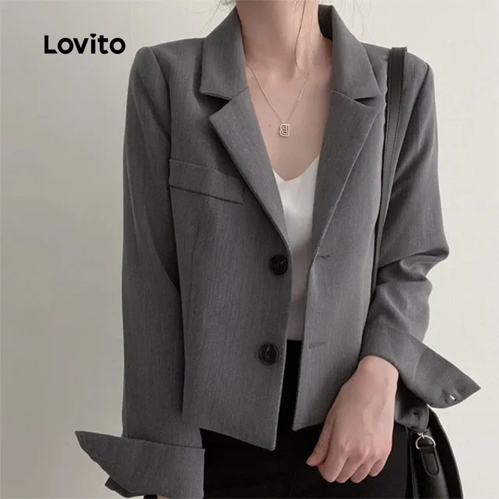 Lovito Blazer Sofisticado para Mulheres Outono/Inverno em Cinza LNA113024