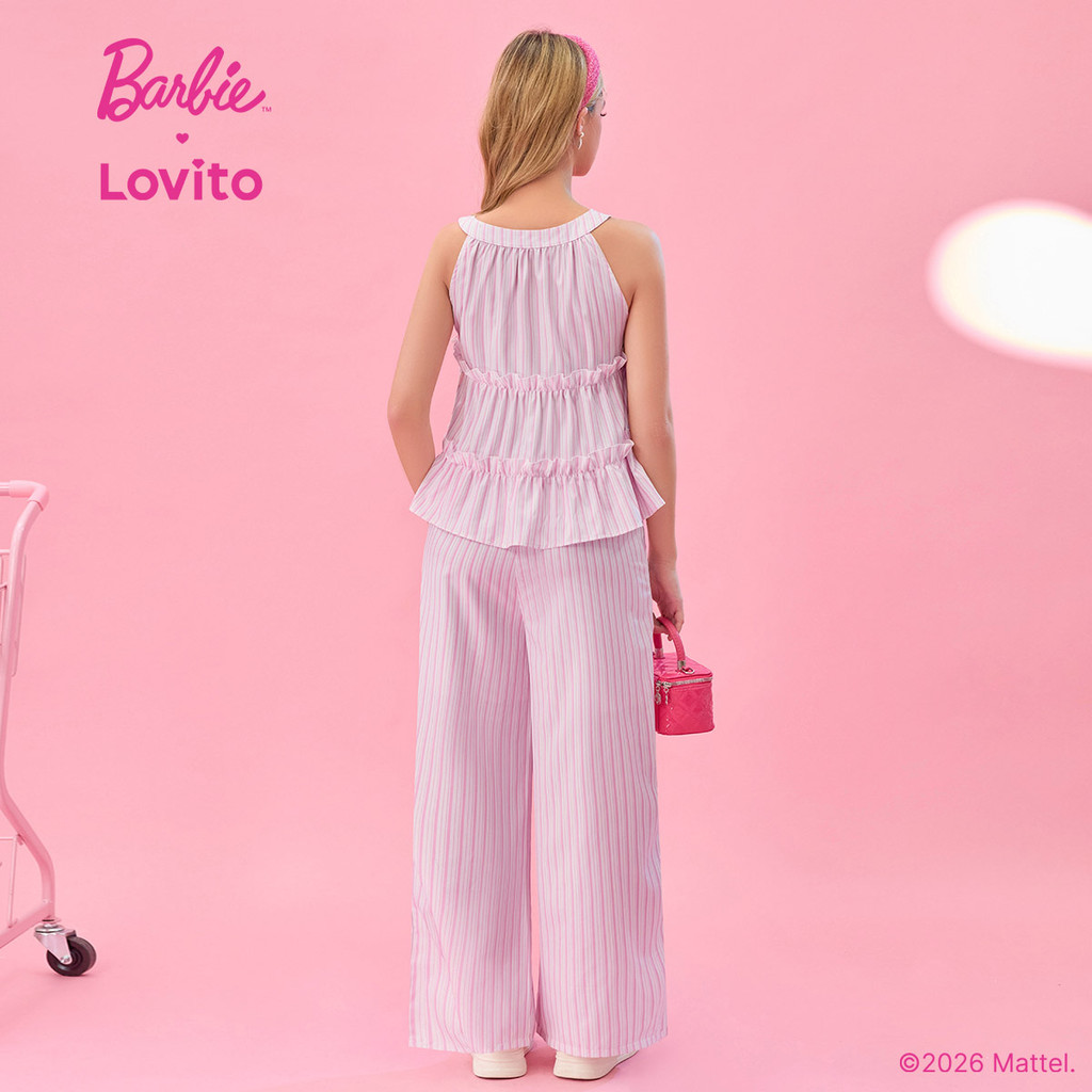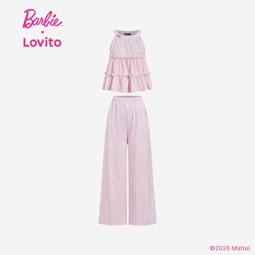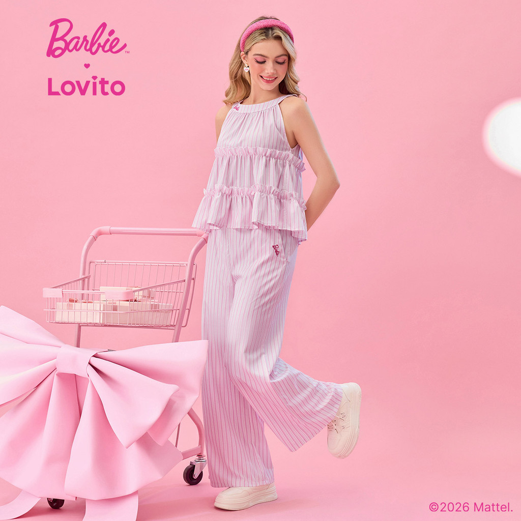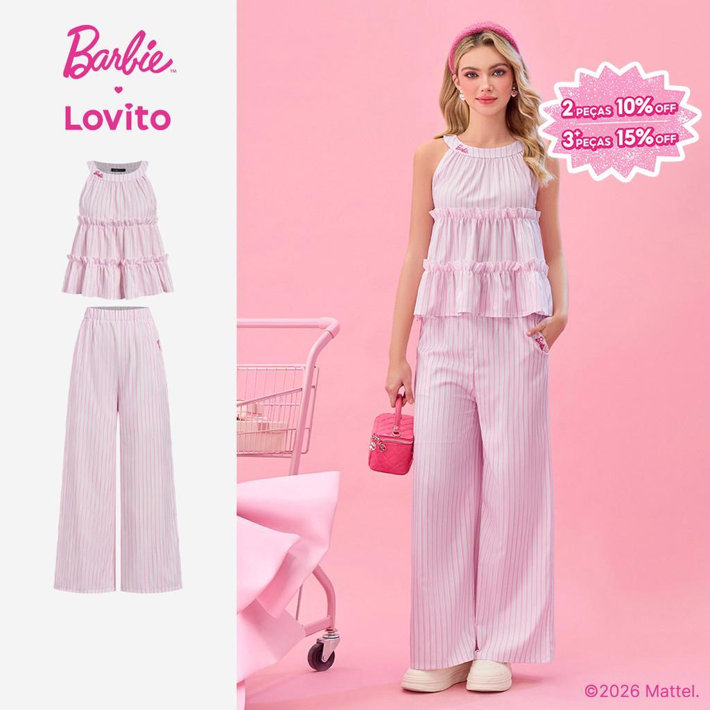 (New arrival) Barbie™ X Lovito Tops ou Bottoms Casuais com Bolso Primavera/verão para Mulheres. PSBL2PAD031