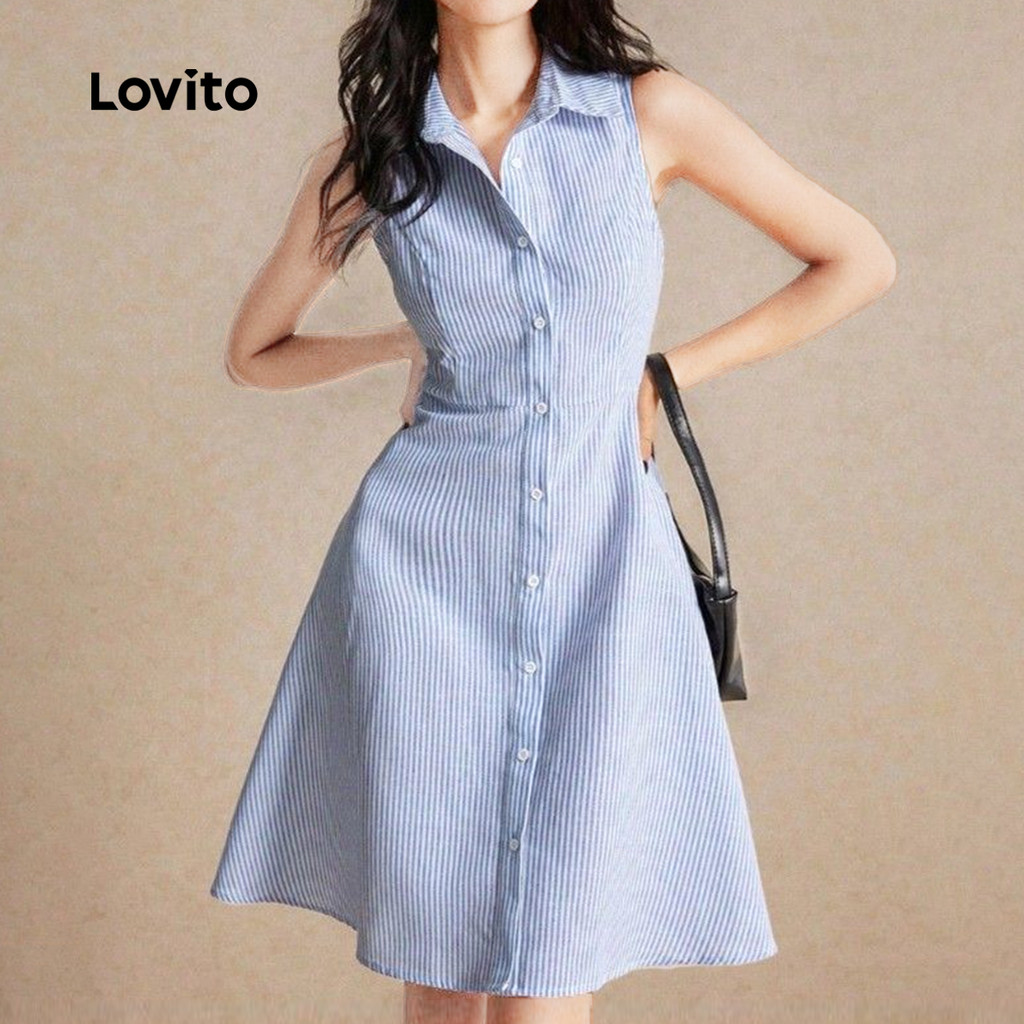Lovito Vestido Elegante E Casual Com Botões Frontais Azul Claro Para Mulheres Primavera/verão L158ED974