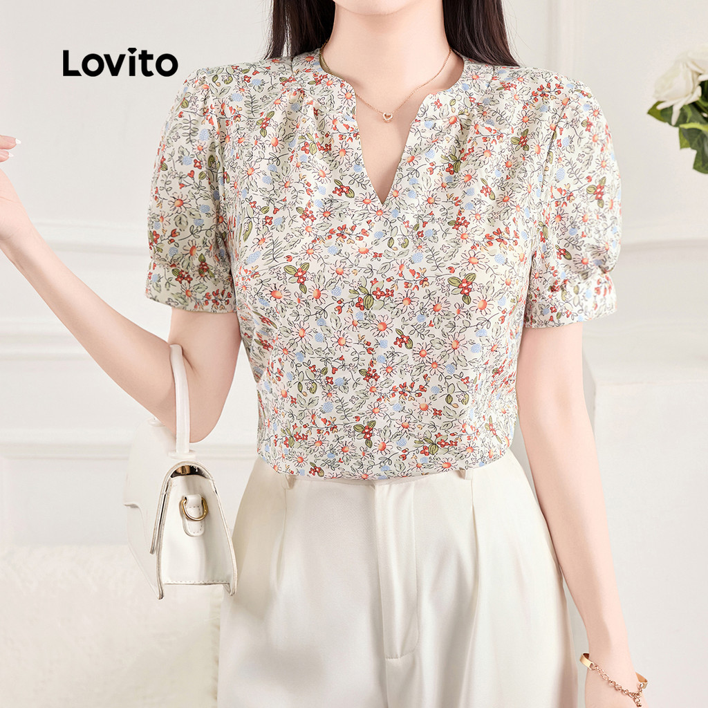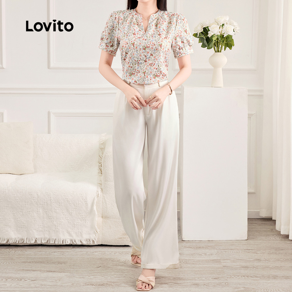 Lovito Blusa Feminina Casual Plissada Estilo Francês para Primavera Verão L150AD1627