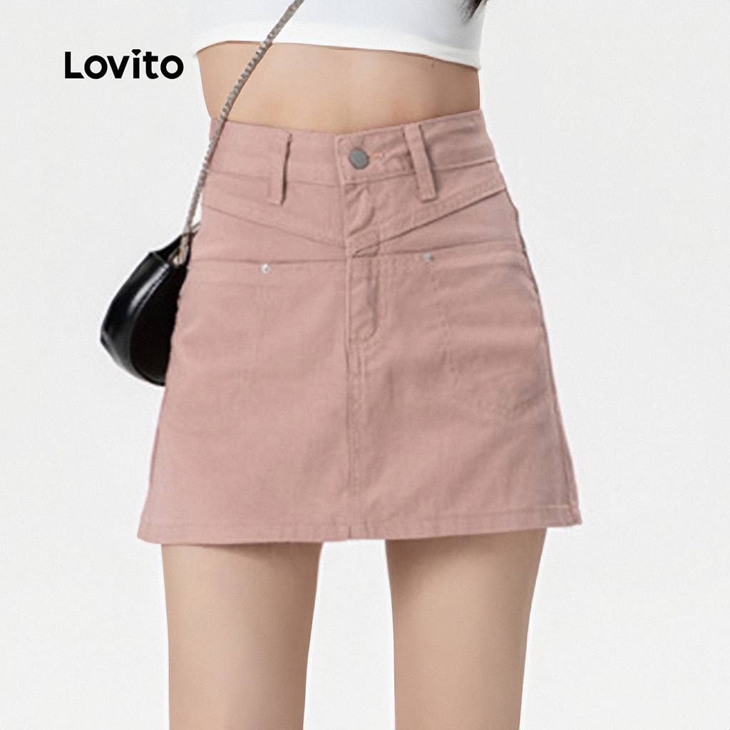 Lovito Saias Jeans Casuais Clássicas Versáteis Lavagem Crua Bolsos Primavera/verão Cinza E Rosa Para Mulheres LNE121026