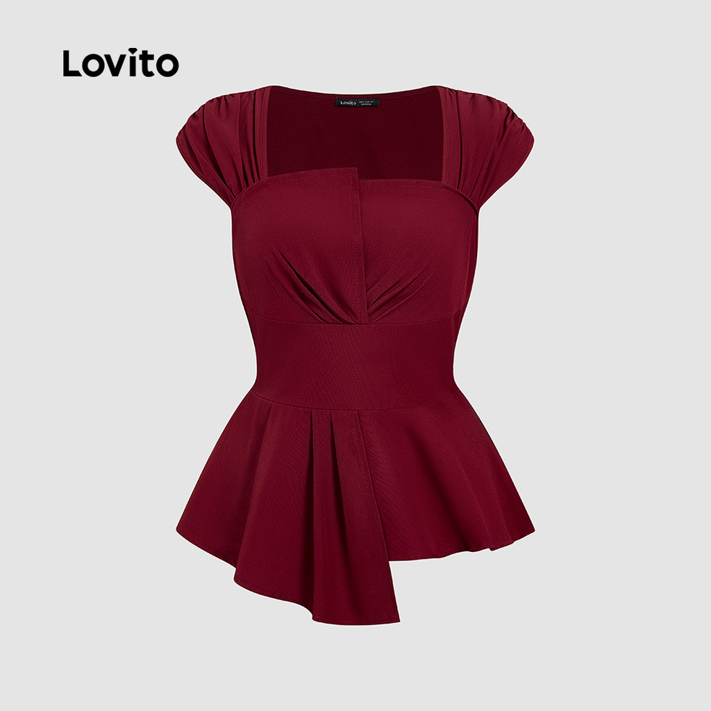 Lovito Blusa Casual Assimétrica Cor Vinho Para Primavera/verão LK2ED324