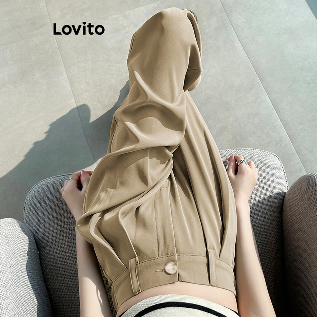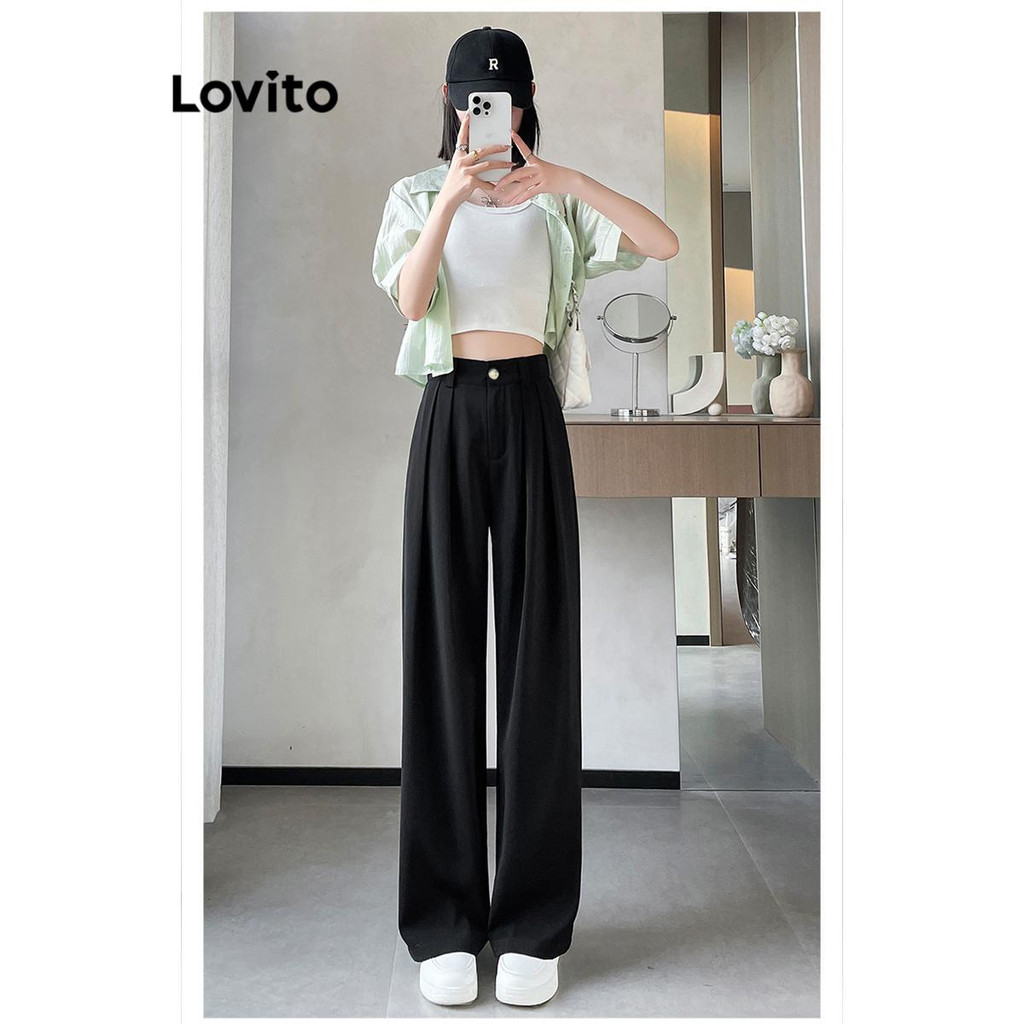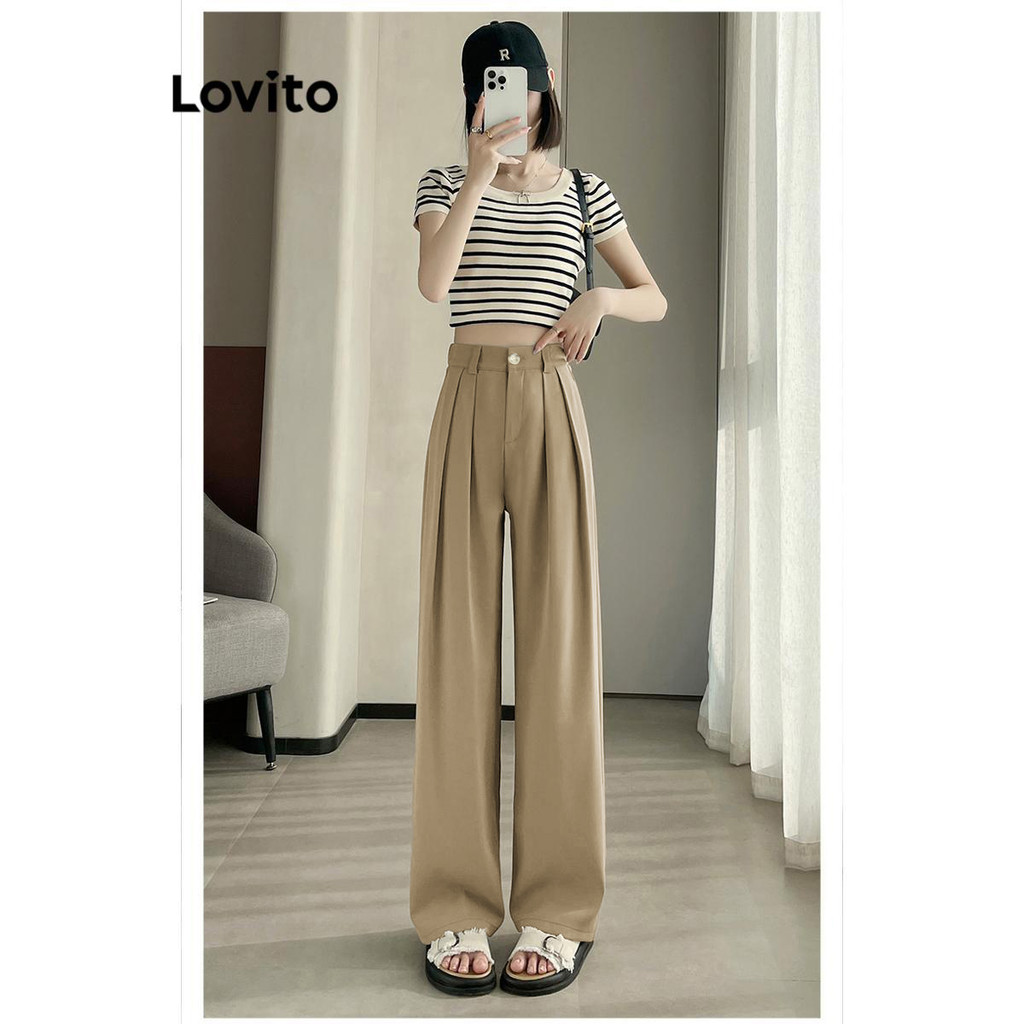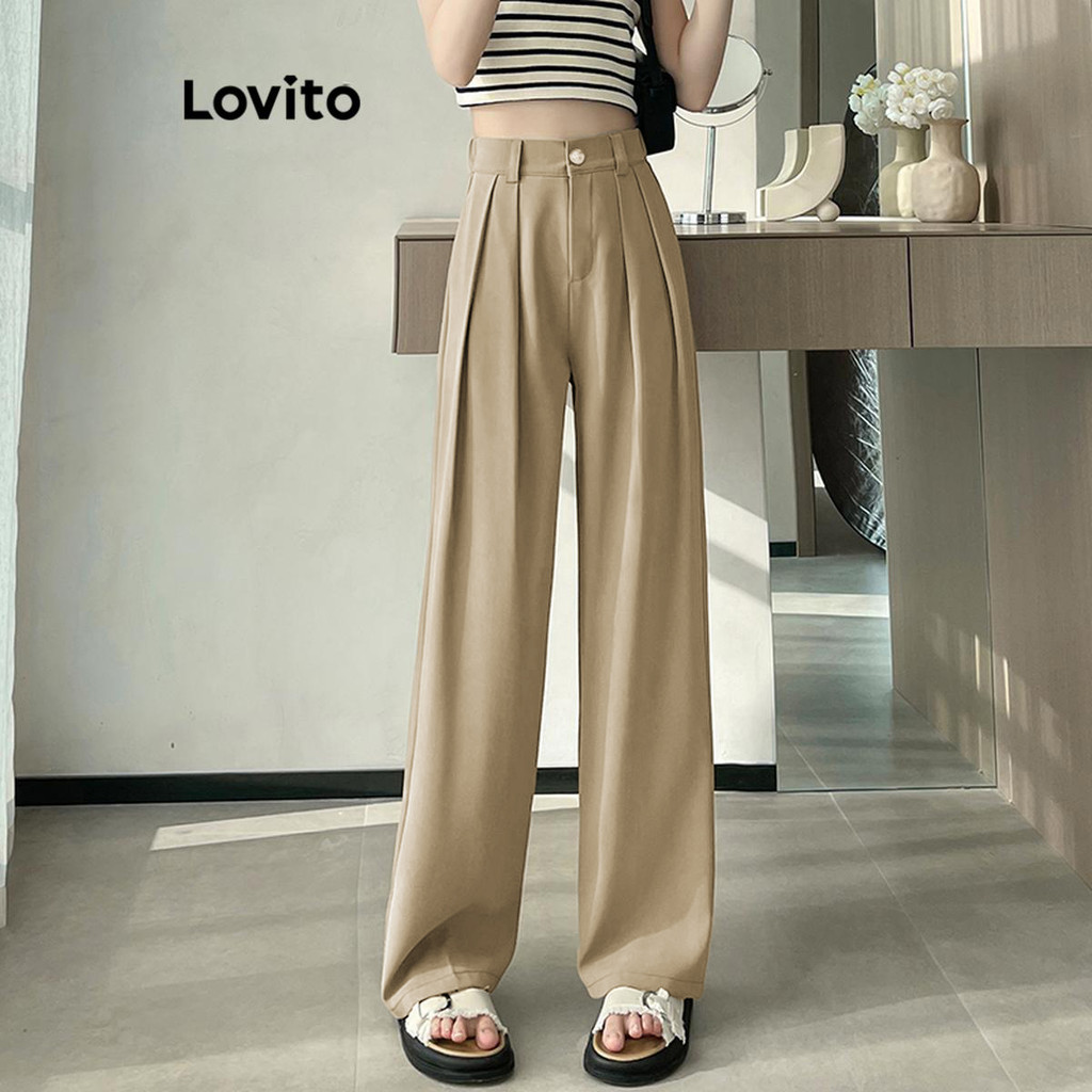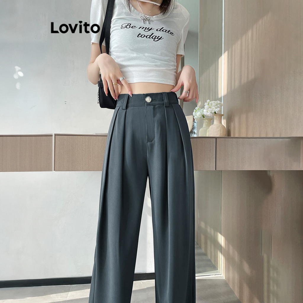 Lovito Calça Feminina Casual Botão E Zíper Lisa LNE51064