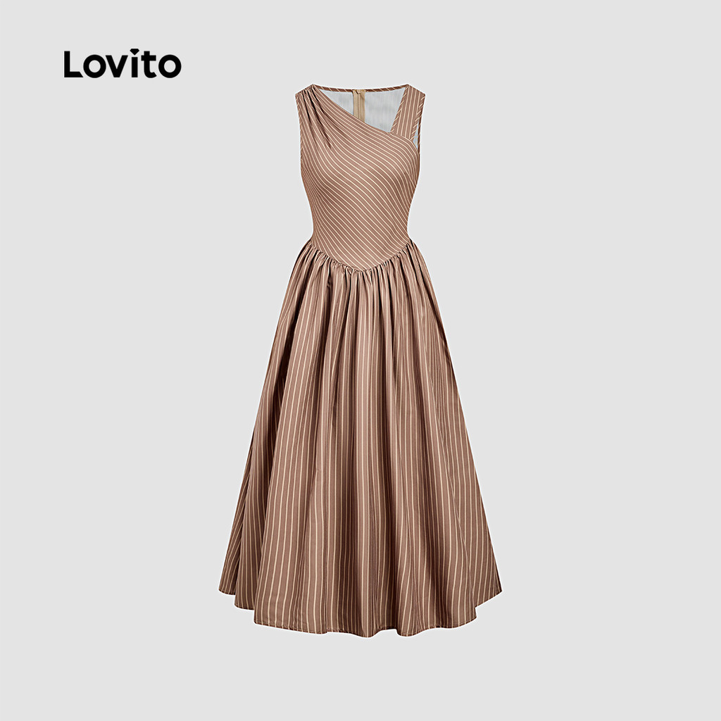 Lovito Vestido Elegante Assimétrico Primavera/verão Marrom para Mulheres L164LD247